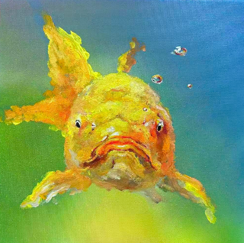 《锦鲤又讲》, 布面丙烯,30*30cm ,2024年