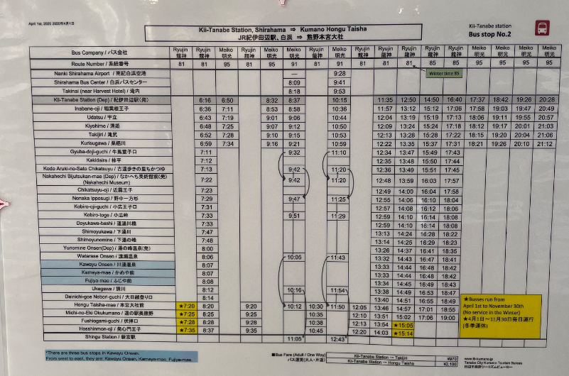 纪伊田边JR站门口的公交车时刻表(看不清可以问我要)