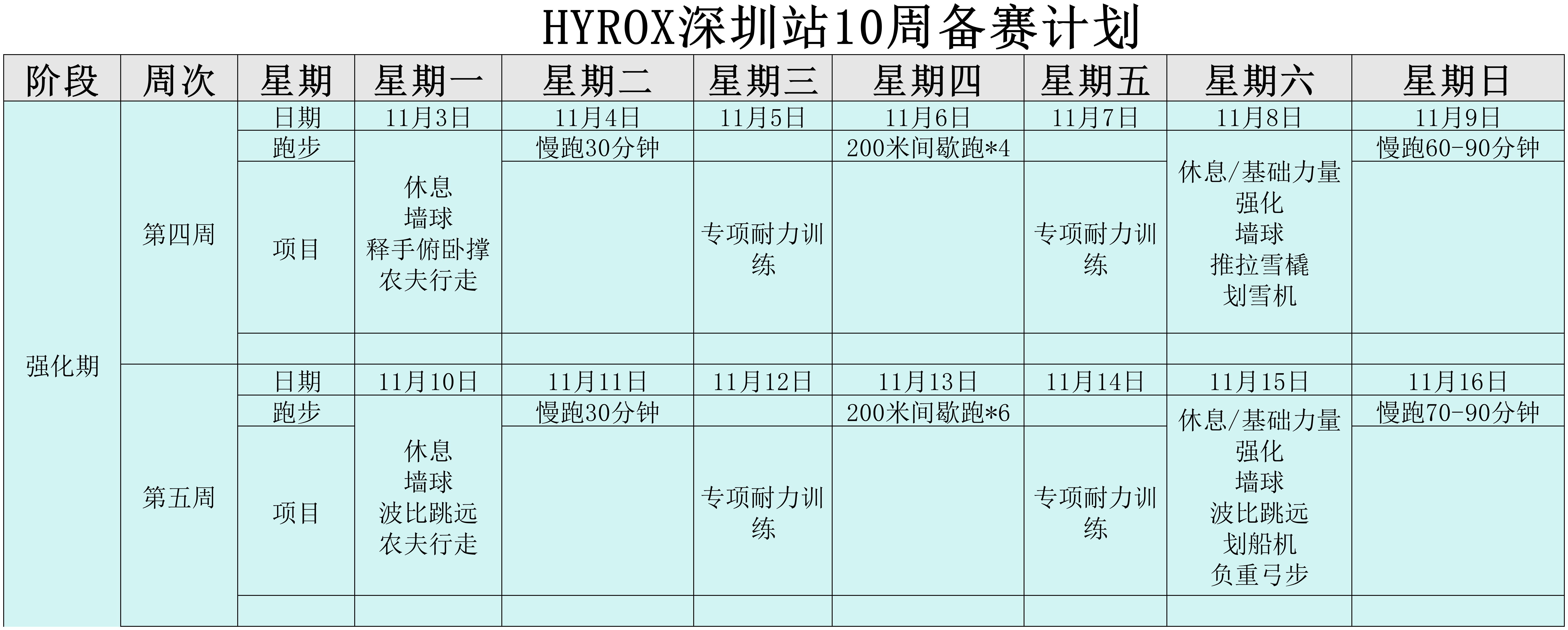 HYROX上周训练总结及本周计划(第四周)