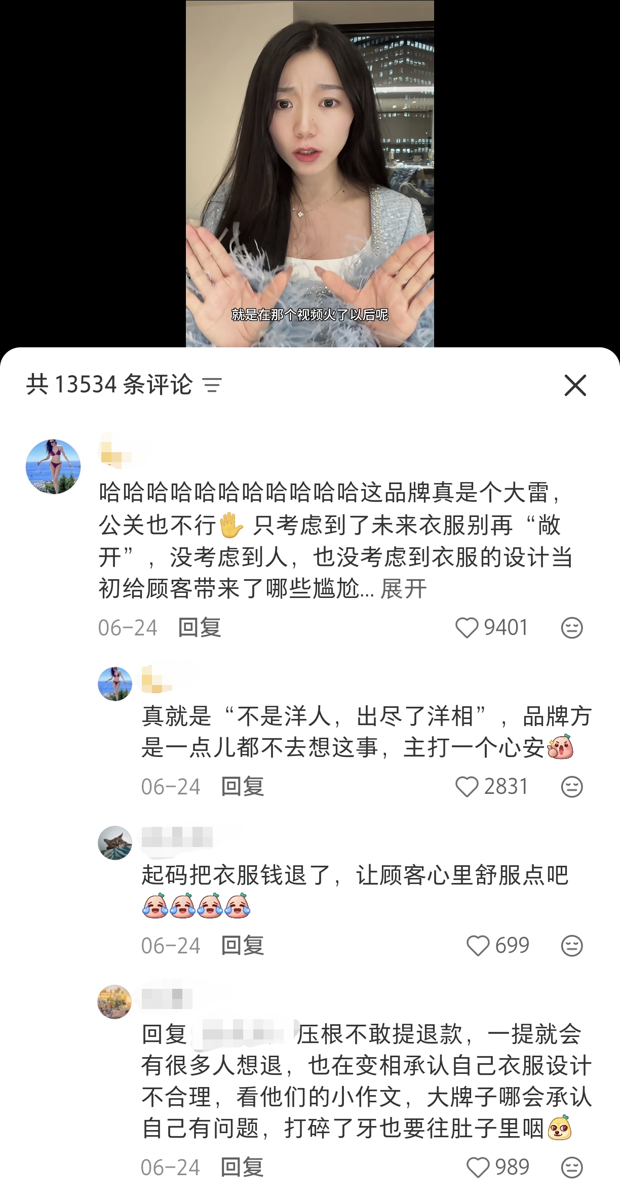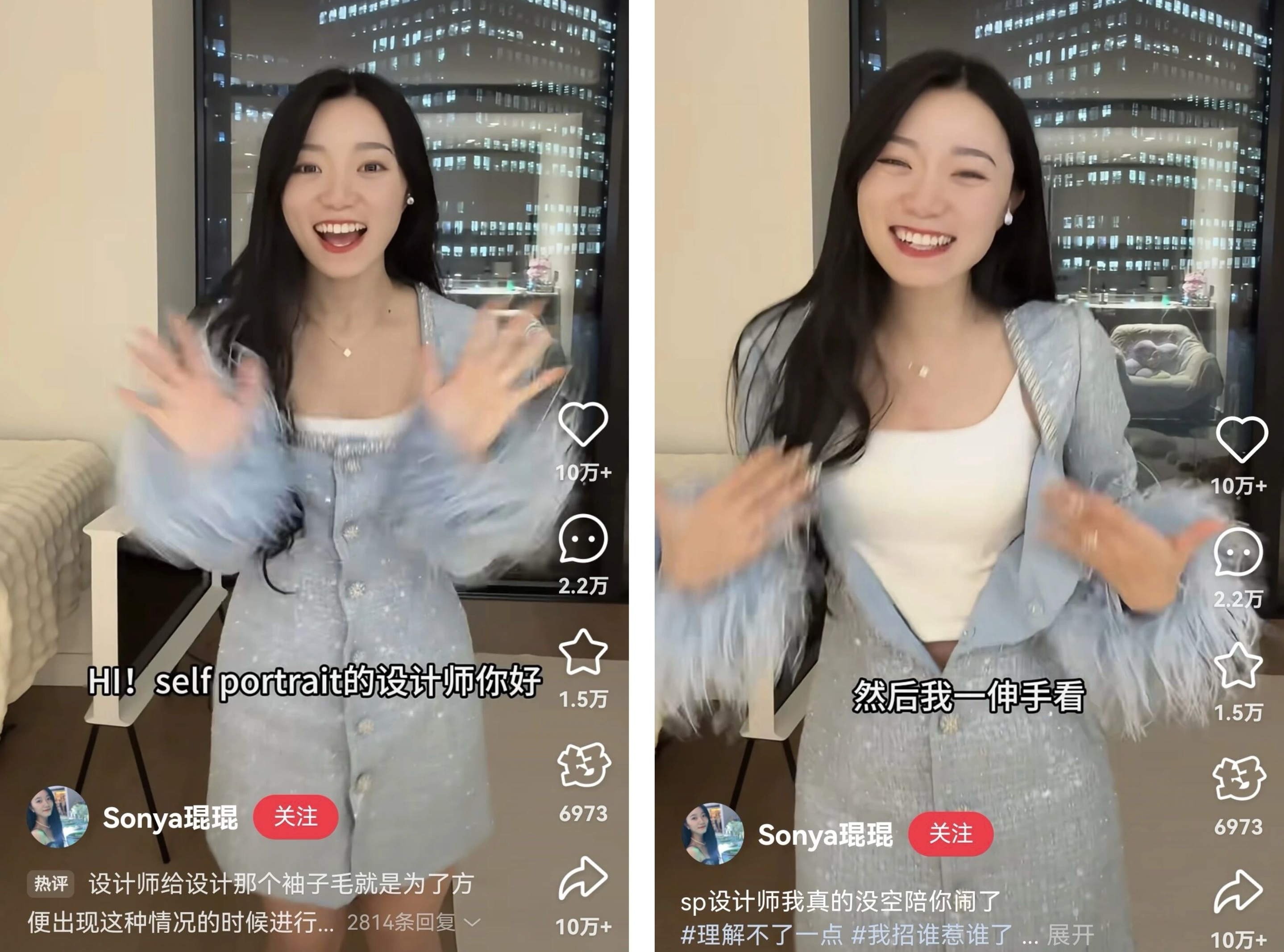 今年6月,网友@Sonya琨琨发布视频,叙述self-portrait的衣服扣不紧让自己在餐厅大出洋相的经历,同样引起了热烈的讨论。