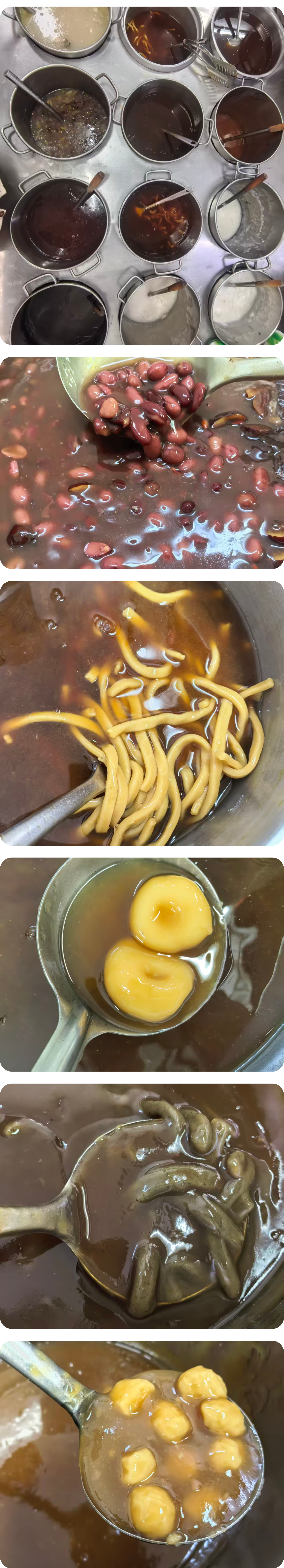 从几分几毛做到现在,近30个品种全部手工现做——削毛薯会扎手、磨米浆要手工、姜汁现榨配甘蔗红糖,每一道工序都是心意和手艺。梅姨说“有钱赚心情就好",60岁还每天泡在厨房蒸汽里捏着毛薯团,曾辍学承担家庭经济重担,只为让两个弟弟能早日读书成家。