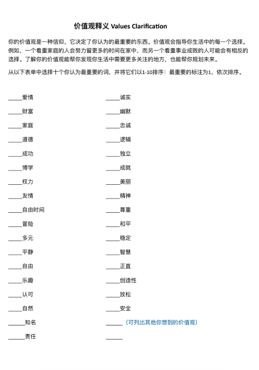 价值观排序自我探索