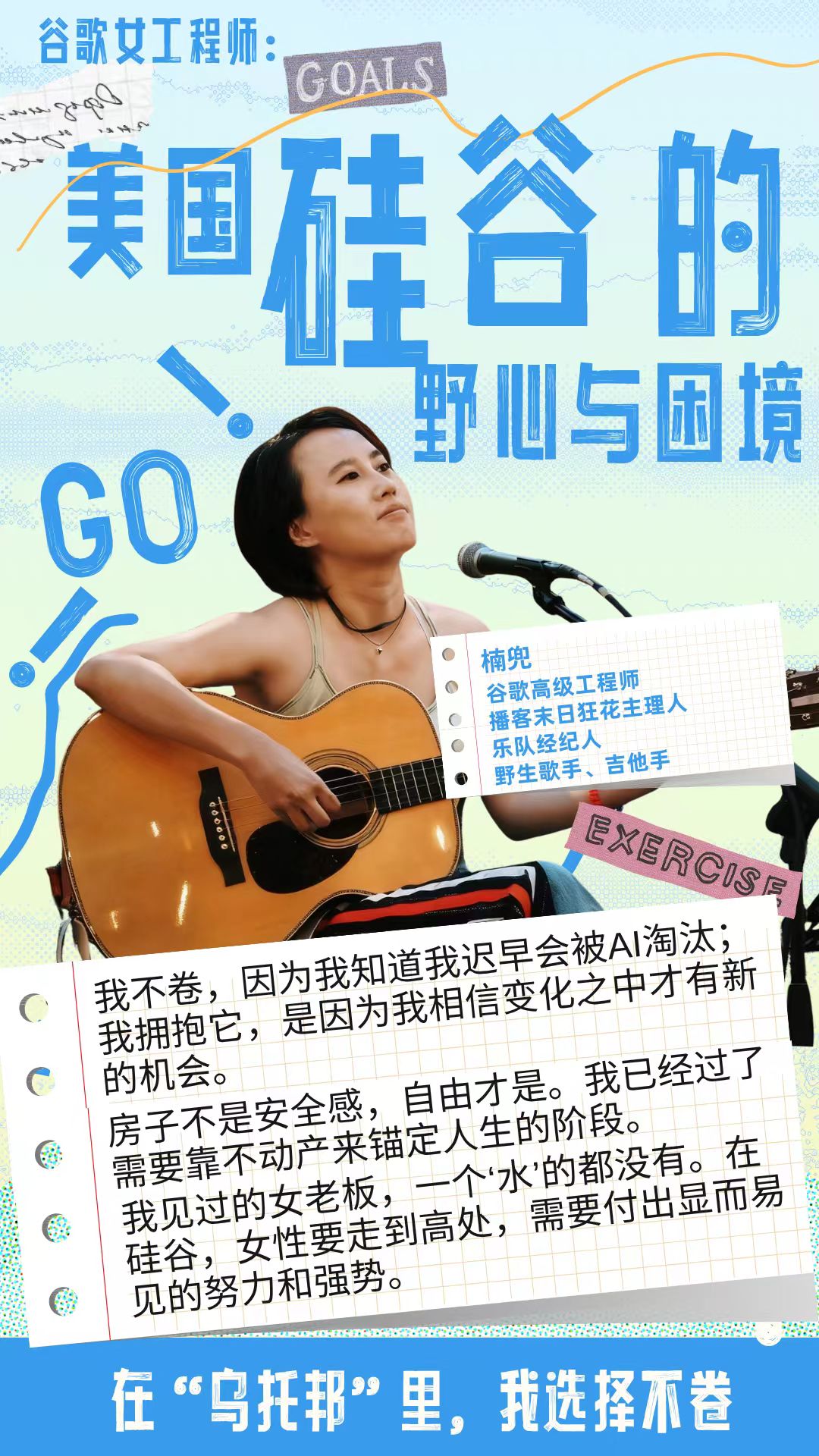 她告诉我们: 女老板们常需强调“强势”才能在男性主导的环境中站稳脚跟;疫情后大厂收缩,常春藤博士也需“过五关斩六将”;AI浪潮席卷,既提升了工程师的工作效率,也让不少人陷入“被替代”的焦虑。而规划“五年退休计划”的她,不执着于职场晋升,更在意用喜欢的方式过一生,不纠结于“安全感=房产”,更相信自由与自驱力的力量。