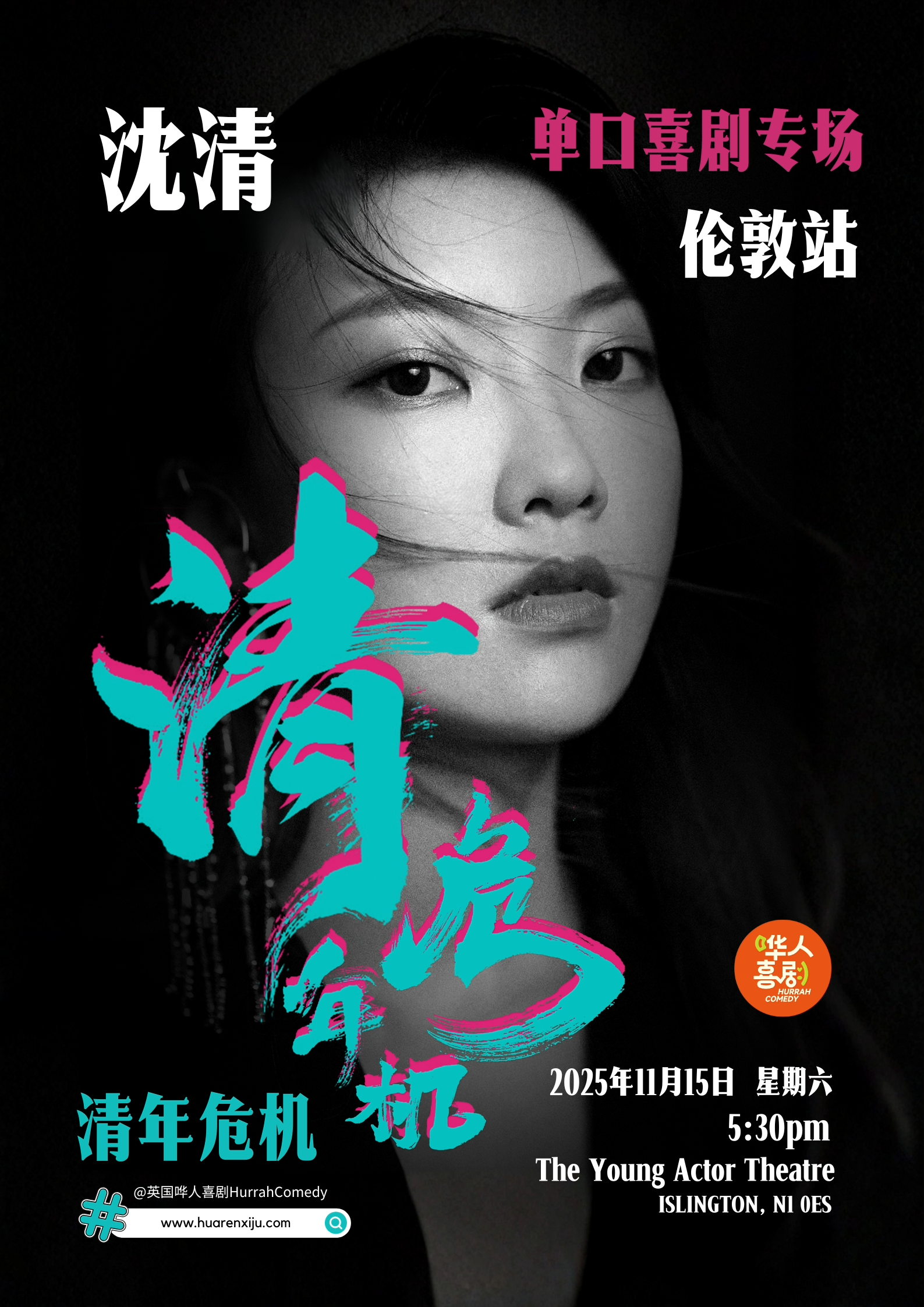 《喜单》卡司——沈清,带着她的专场《清年危机》来英国啦!欢迎来现场一起开心!