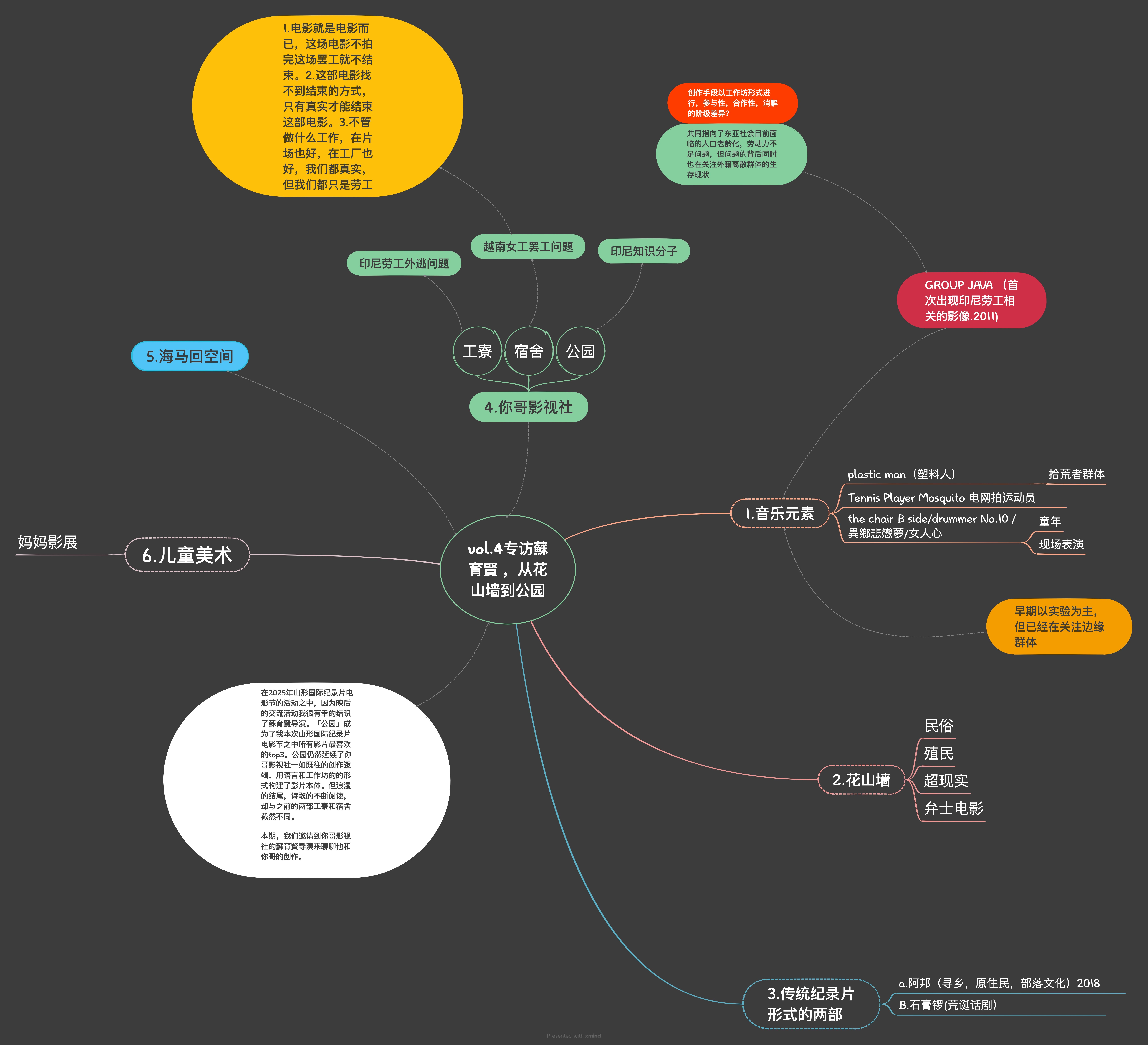 同时在本年度山形国际纪录片电影节所有影片之中,蘇育賢导演和你哥影视社共同创作的「公园」成为了我们最喜欢的top3之一。公园仍然延续了你哥影视社一如既往的创作逻辑,用语言和工作坊的的形式构建了影片本体。但影片中诗歌的不断阅读,浪漫的结尾,却与之前的两部影片「工寮」和「宿舍」有些许不同。这给我们留下了相当深刻印象的同时也激发出我们对于蘇育賢导演过往作品的兴趣。