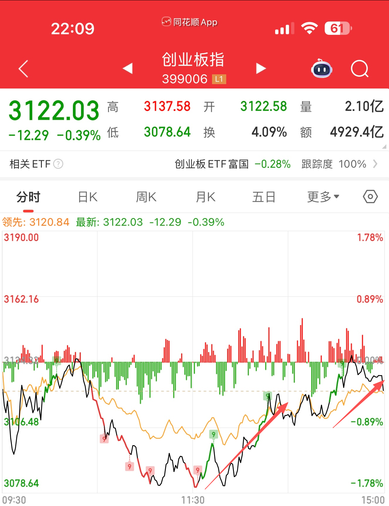 双创今天均探底回升收十字星,出现长下影线表明短期止跌反弹的概率较大