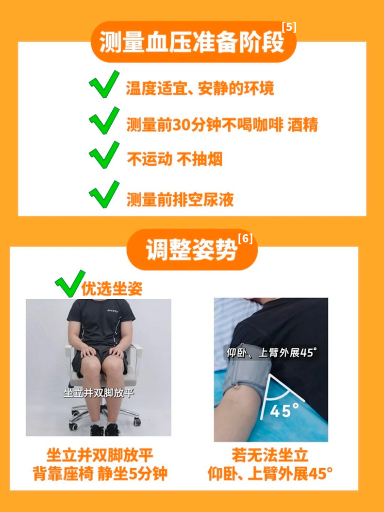 坐位测量时双腿自然下垂,不要翘二郎腿。另外,坐位测量的舒张压一般会比仰卧位高5mmHg[5],两种测量方法的收缩压相差不大