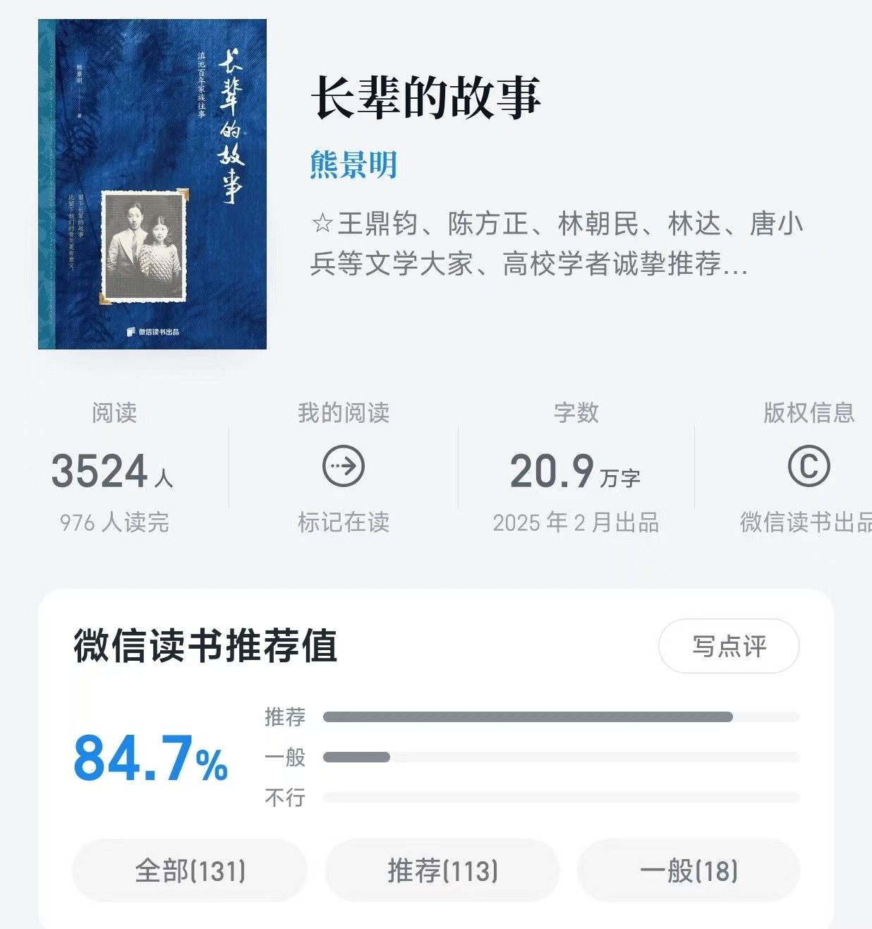 2.《长辈的故事》 熊景明 著