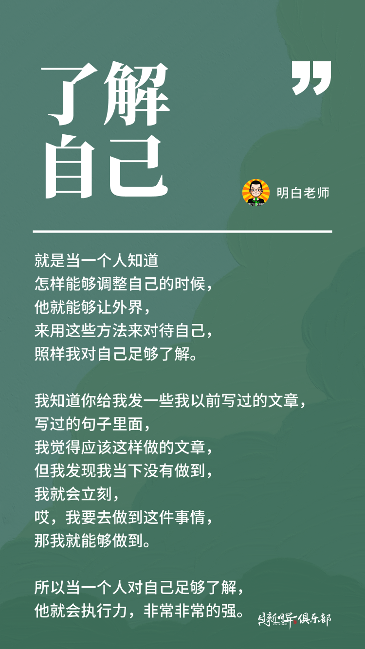 所以当一个人对自己足够了解,他就会执行力,非常非常的强。