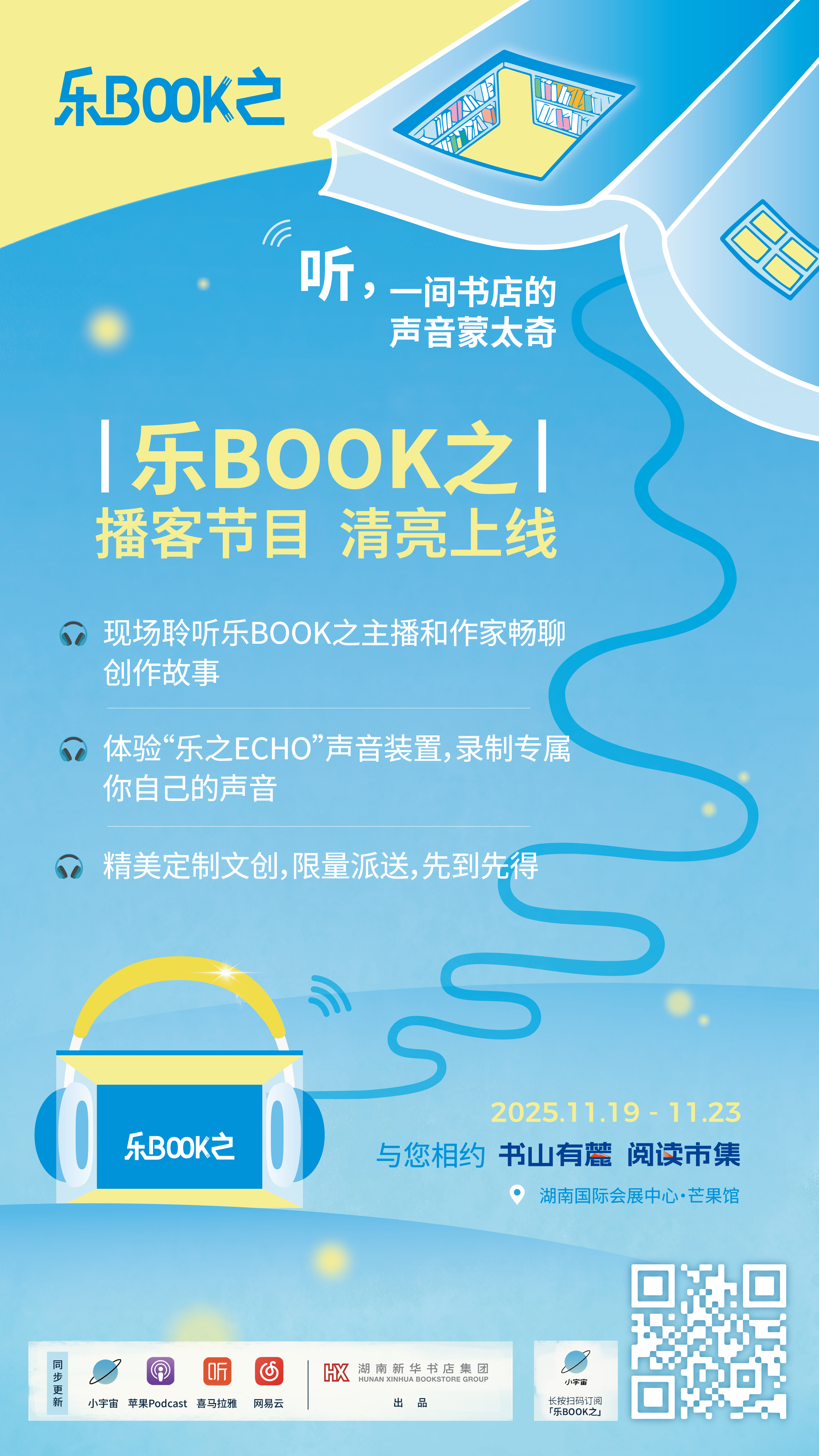 朋友们还想了解今年的岳麓书会有什么惊喜和福利,咱们评论区聊吧! 11月19日-23日阅读市集期间还会发起抽奖,部分抽奖结果也会在我们播客的评论区揭晓,请大家没事就进来查收你的好运气哦。