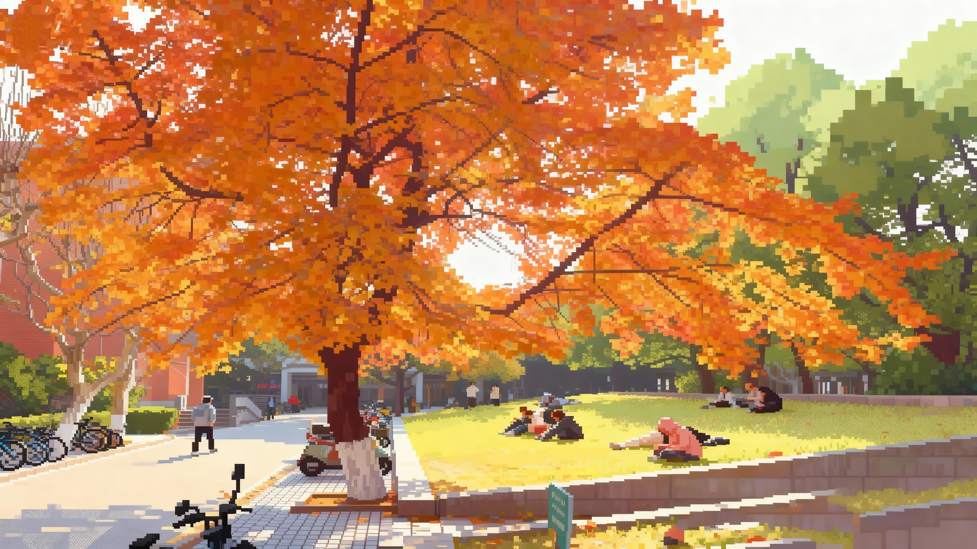 同济大学四平路校区“情人坡”和图书馆