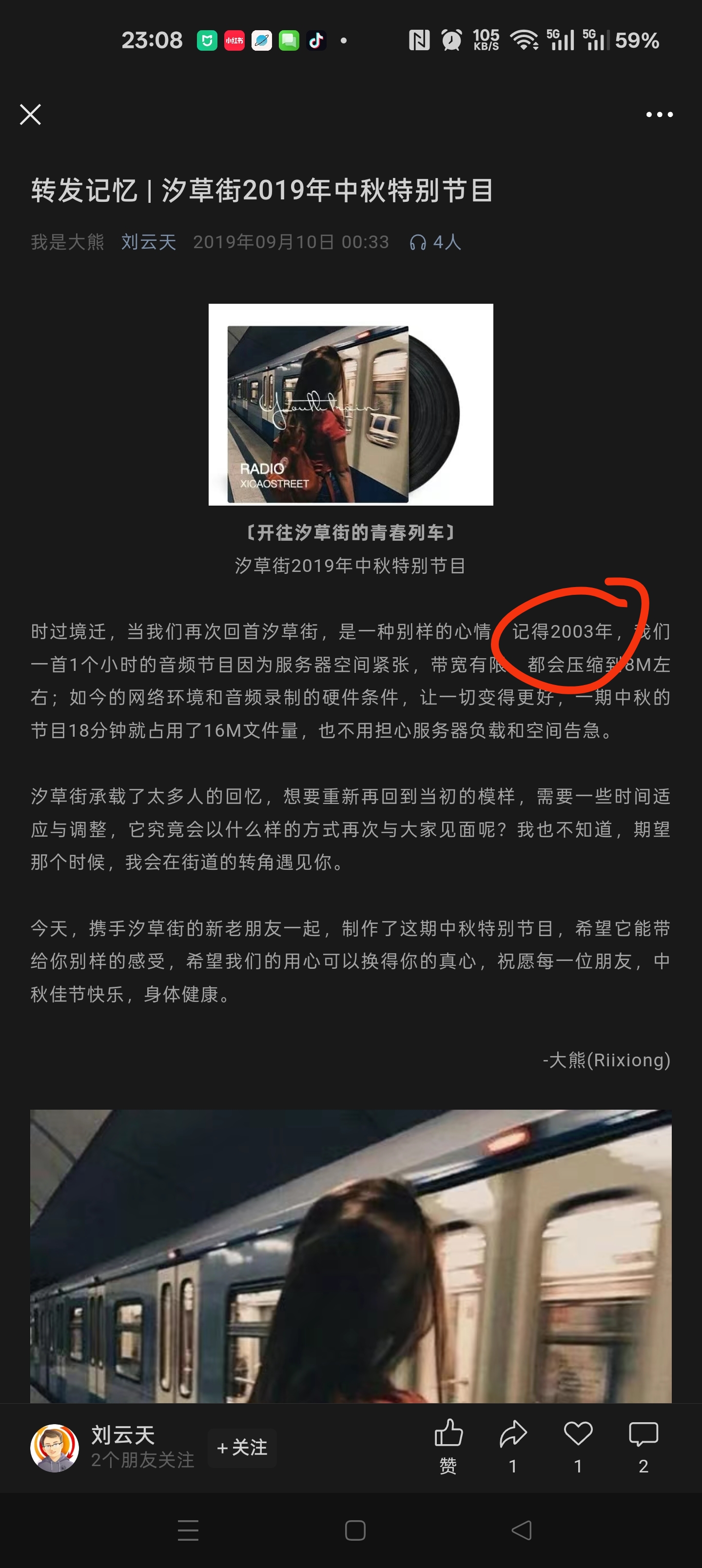 这是在2019年汐草街论坛主理人“大熊”回忆2003年制作汐草街网络电台