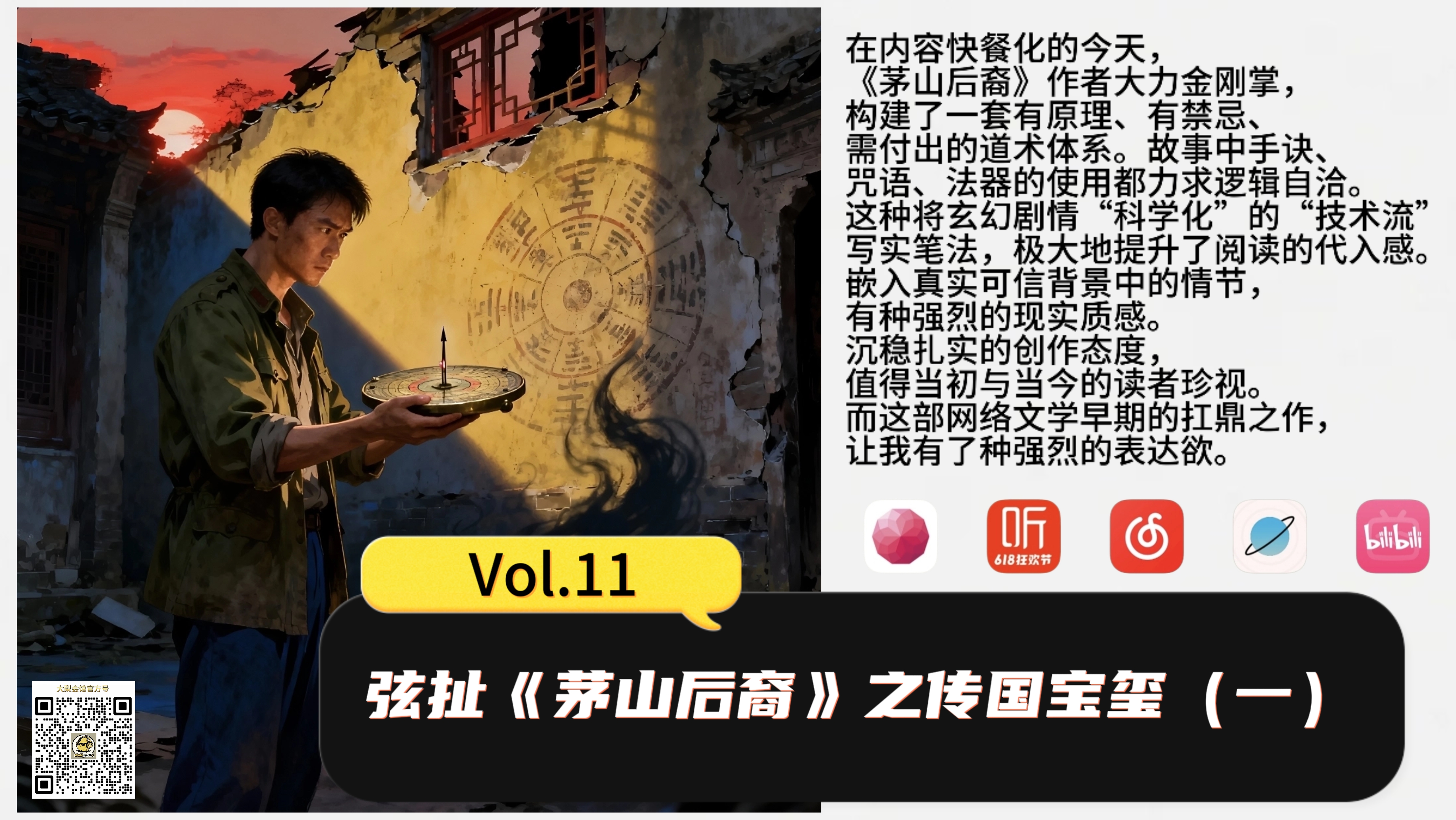 第11期 弦扯《茅山后裔》之传国宝玺(一)本节目由『大梨会馆』播客制作播出本期主播:空弦片头曲:《不归的传人》| 空弦&Muse AI片尾曲:《后裔》| 空弦&Muse AI收听方式:荔枝FM、小宇宙、喜马拉雅、网易云音乐搜索“大梨会馆”。 B站、视频号搜索“大梨会馆播客”
