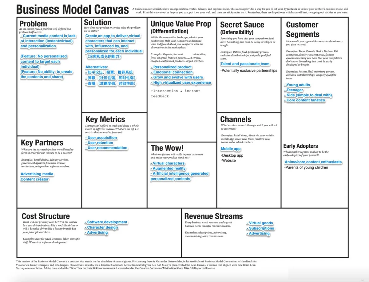 这周,我翻出了一张2019年的“藏宝图”——一个积满灰尘的 Business Model Canvas(见下图)。