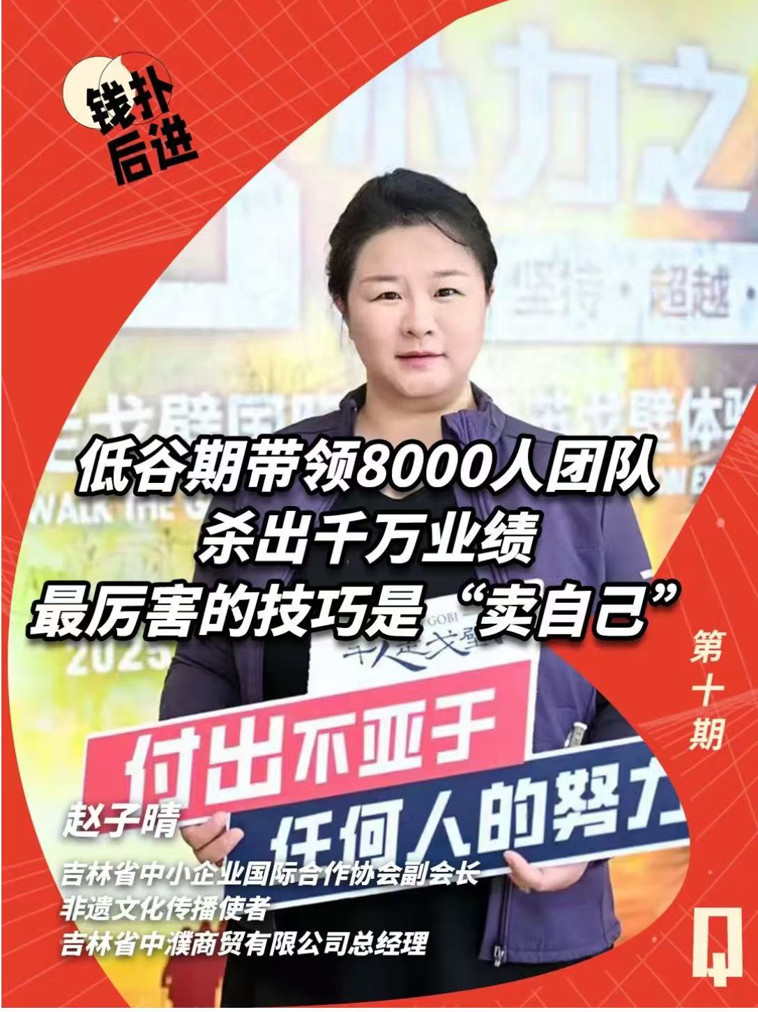 在本期节目中,我们邀请到了第10位嘉宾——赵子晴,吉林省中小企业国际合作协会副会长、非遗文化传播使者、吉林省中濮商贸有限公司总经理