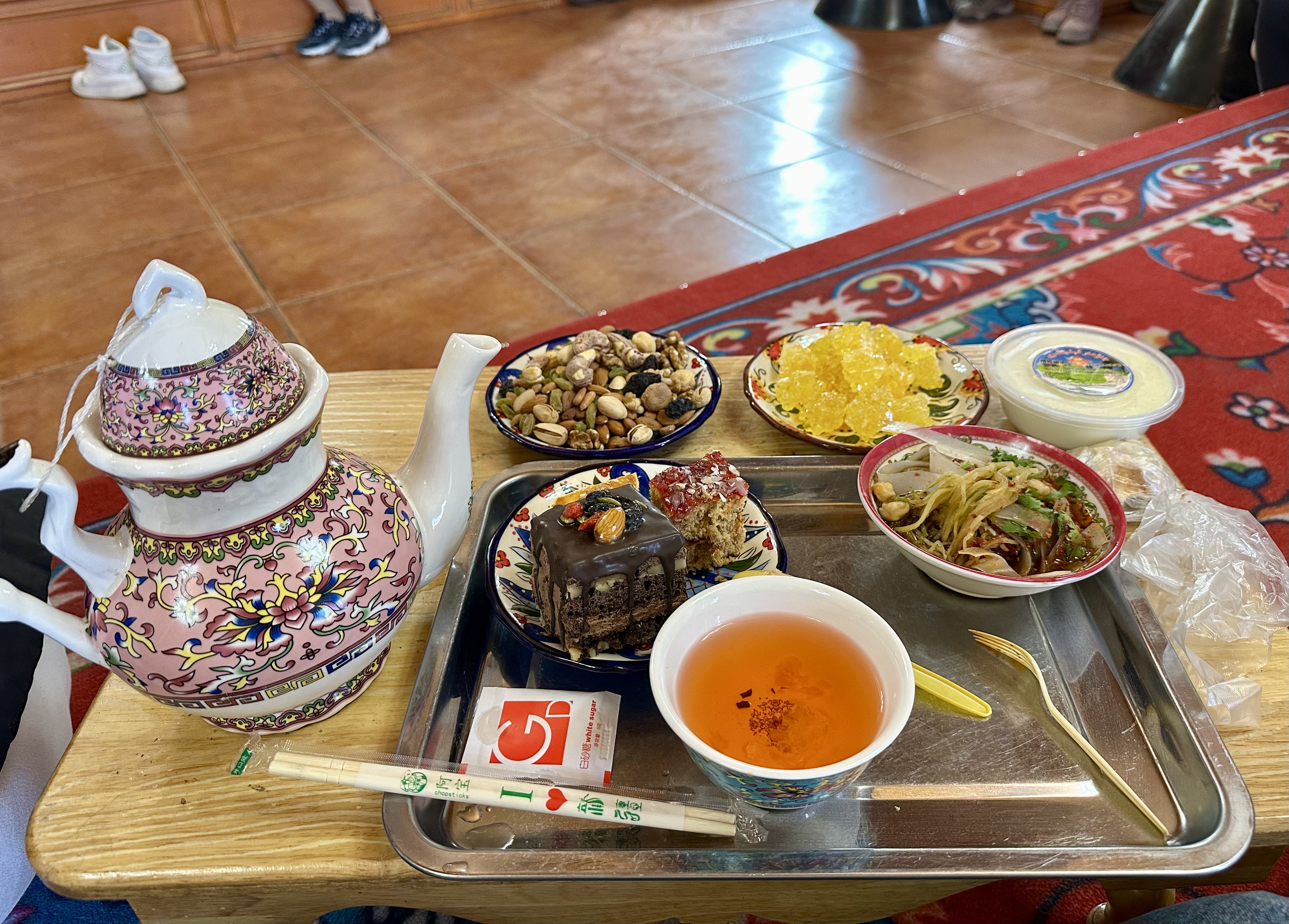 day1:一早8.吃早餐,巡回逛古城-逛彩贝乐超市-试/做裙子-回酒店吃黑羊羊特色羊羔店-