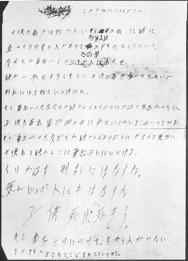 「恐吓信」- 埼玉県警察狭山署(1963年5月4日付実況見分調書)