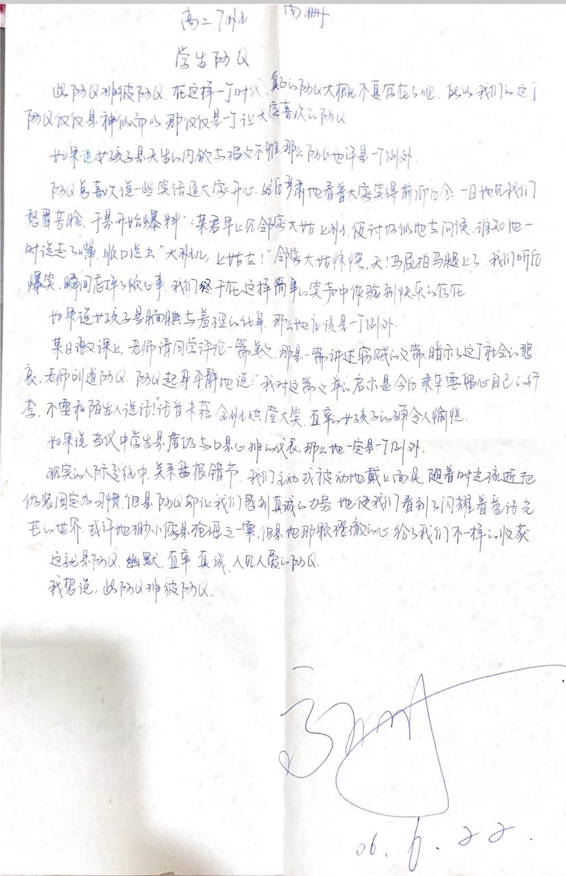 前些日子,我经历了“蝴蝶效应”。因为12月我和好朋友们要一起出游,所以准备了护照。我的重要证件都会放在一个固定的抽屉里。为了放护照,翻了抽屉,就发现了20年前的一封高中时期的信。这封信很特别,它是一篇作文,还在课堂上被语文老师公开朗读过。
