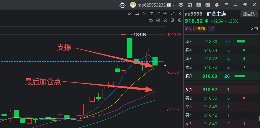 尽管今天黄金投资亏损,但 cc 分享了其黄金投资的成本和支撑位,并制定了详细的加仓计划。即使十二月份不降息,明年也会降息,所以对贵金属仍然保持乐观态度。同时提到目前持有多单,整体仓位控制良好,即使短线变中长线也能接受。