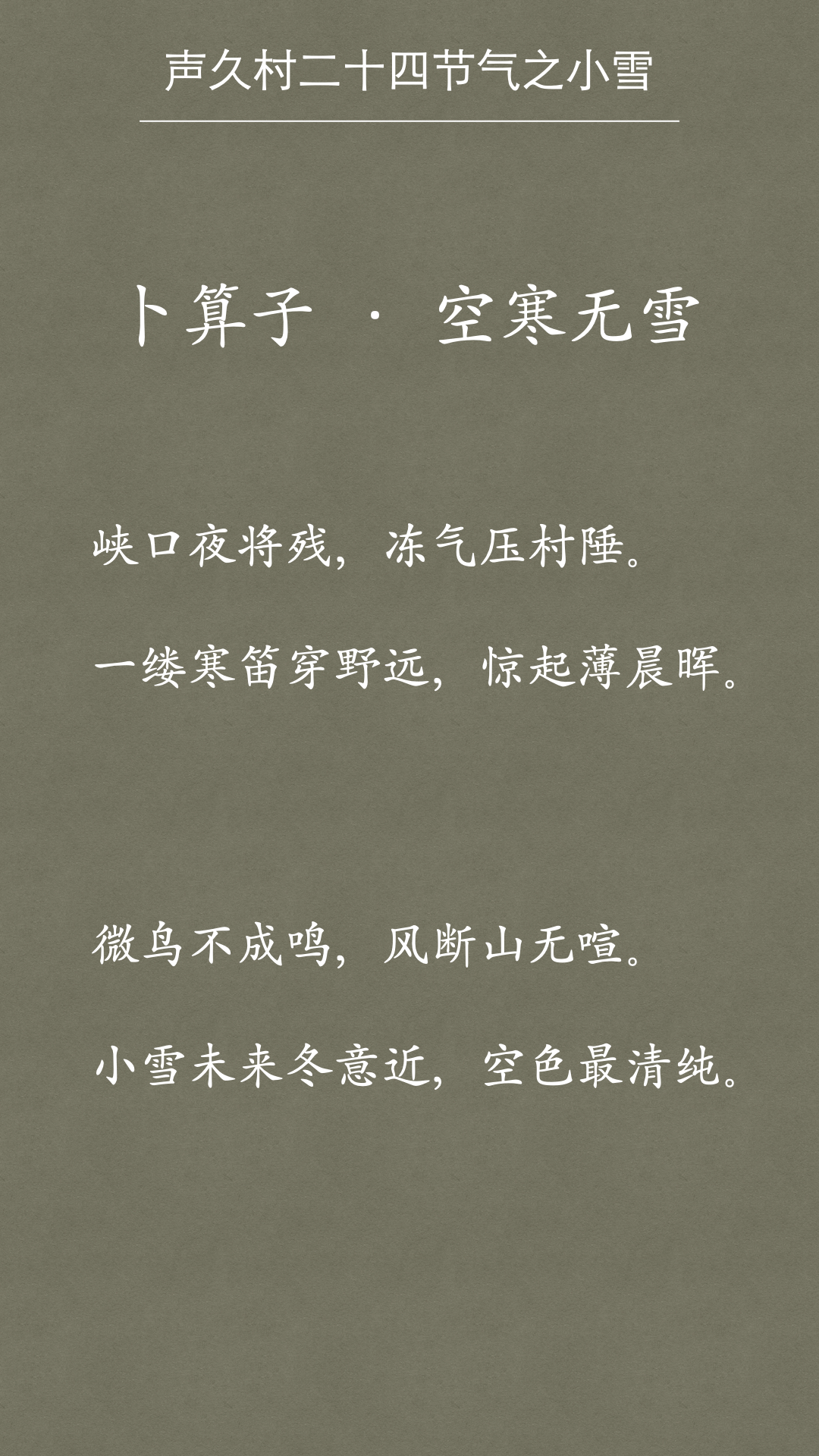 声久村二十四节气之小雪——孤寒无雪