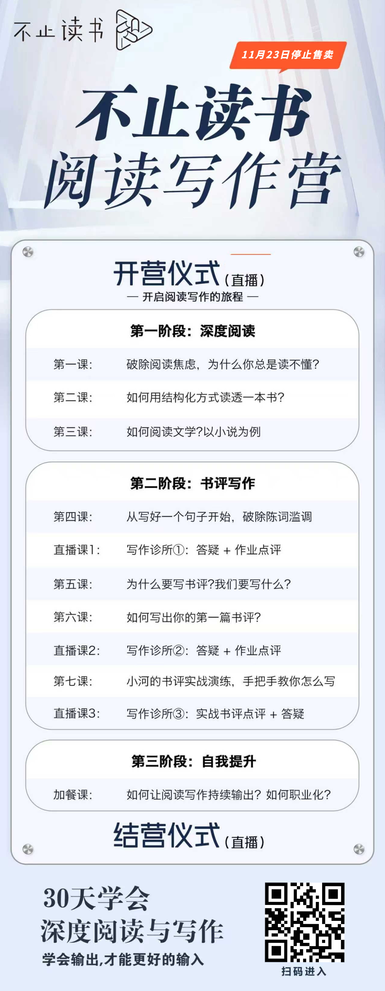 扫下图中二维码,即可购买(前100名立减100元)。11月23日截止。(购买后可以添加小助理进群,24日正式开始)