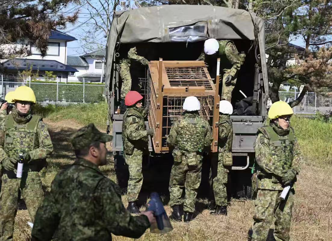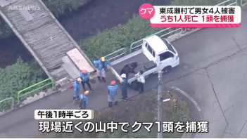 17:40 秋田县东成濑村事发现场被捕获的黑熊