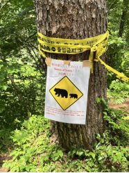 今年7月,在白川乡合掌村徒步时看到的熊出没告示