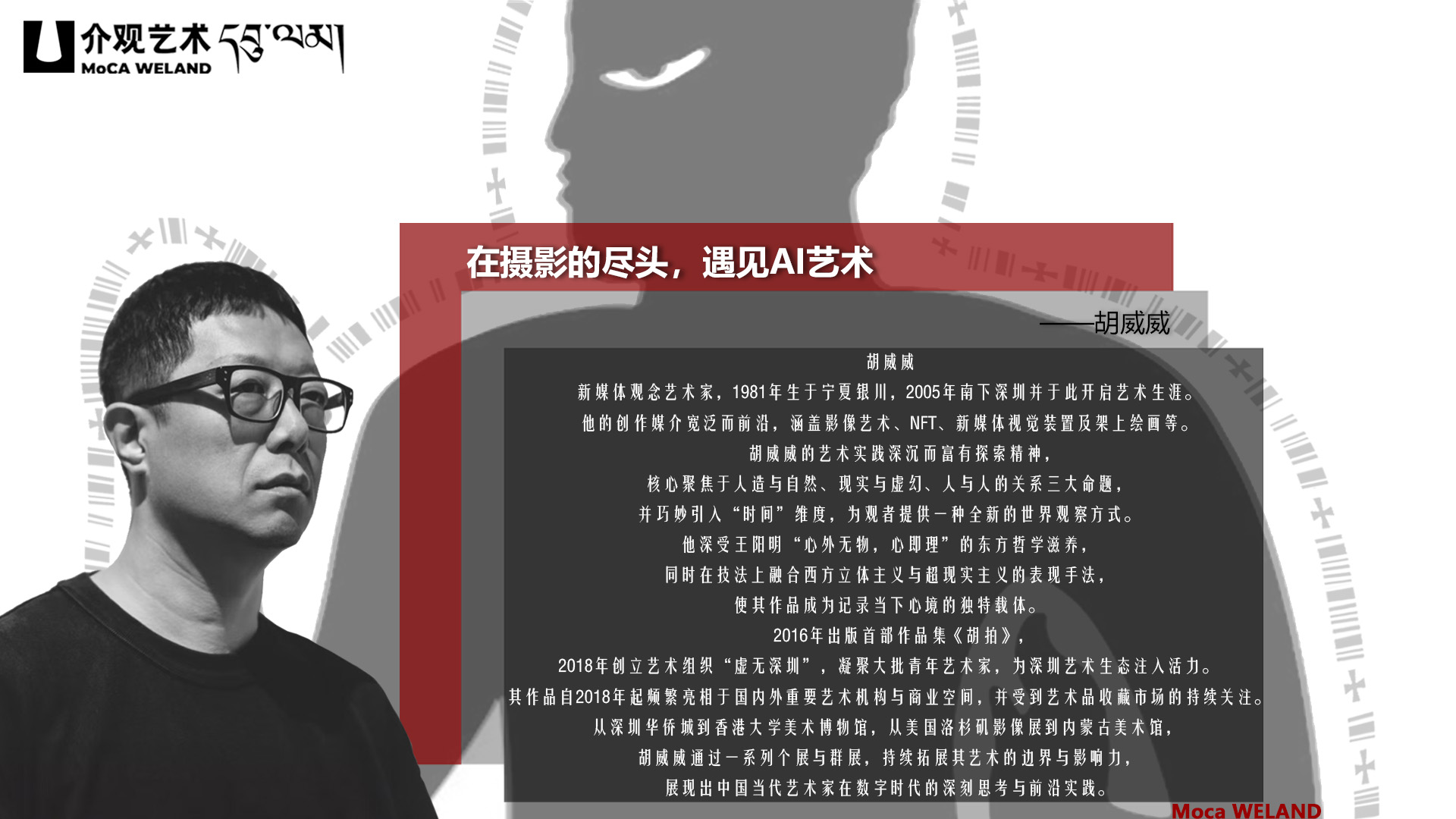 胡威威,新媒体观念艺术家,1981年生于宁夏银川,2005年南下深圳并于此开启艺术生涯。他的创作媒介宽泛而前沿,涵盖影像艺术、NFT、新媒体视觉装置及架上绘画等。