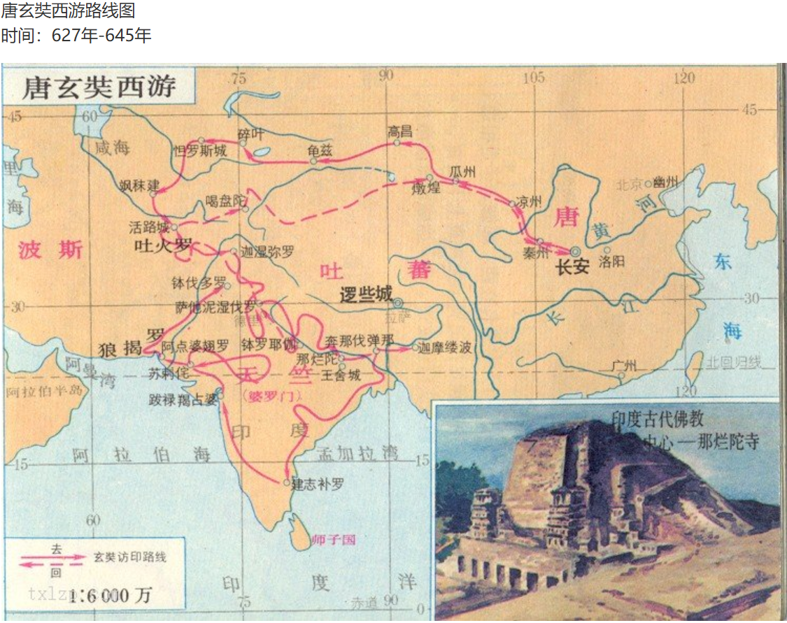 玄奘的西游路线贴在这里: