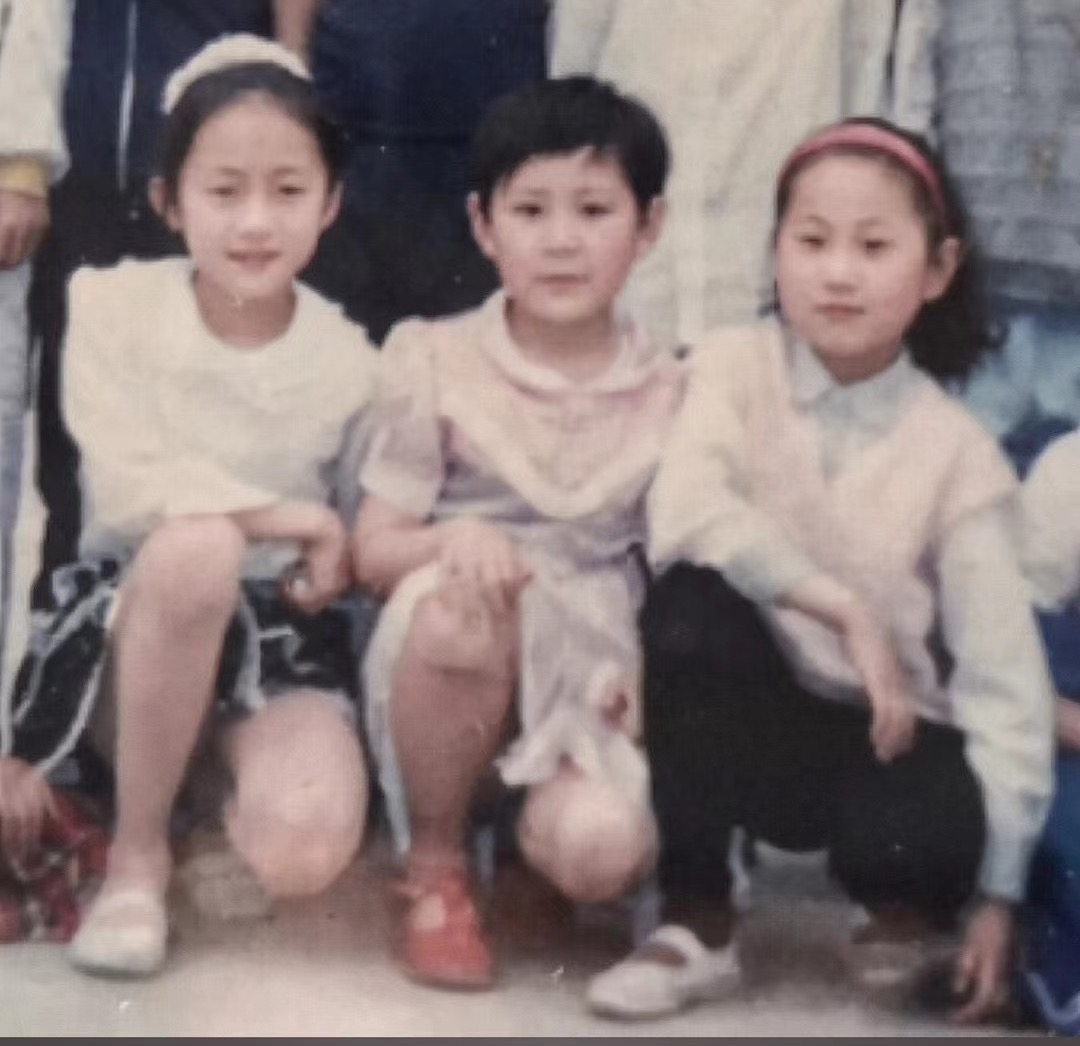 小学合影占领C位的“我们仨”