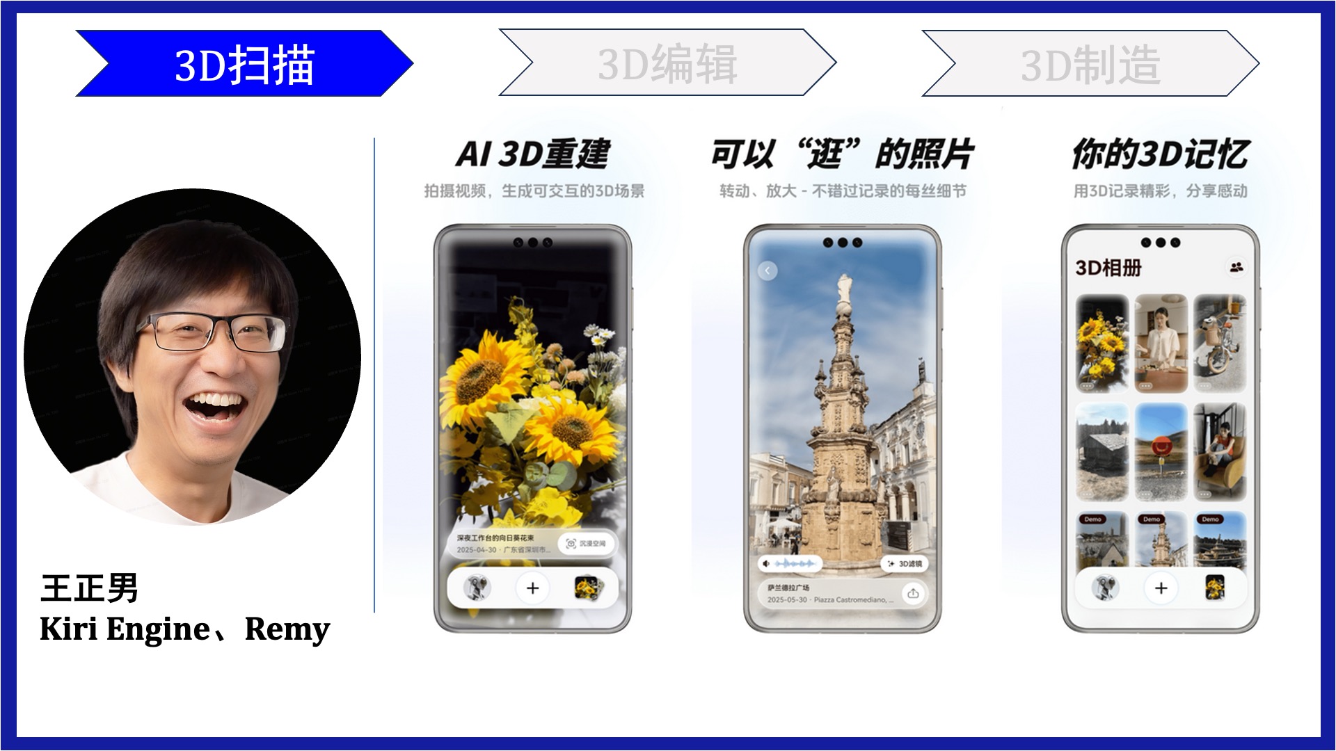- 3D扫描代表:王正男(全球3D扫描榜一应用Kiri Engine开发者,中国区应用Remy曾在鸿蒙OS开发者大会开场演讲首发)www.kiriengine.app