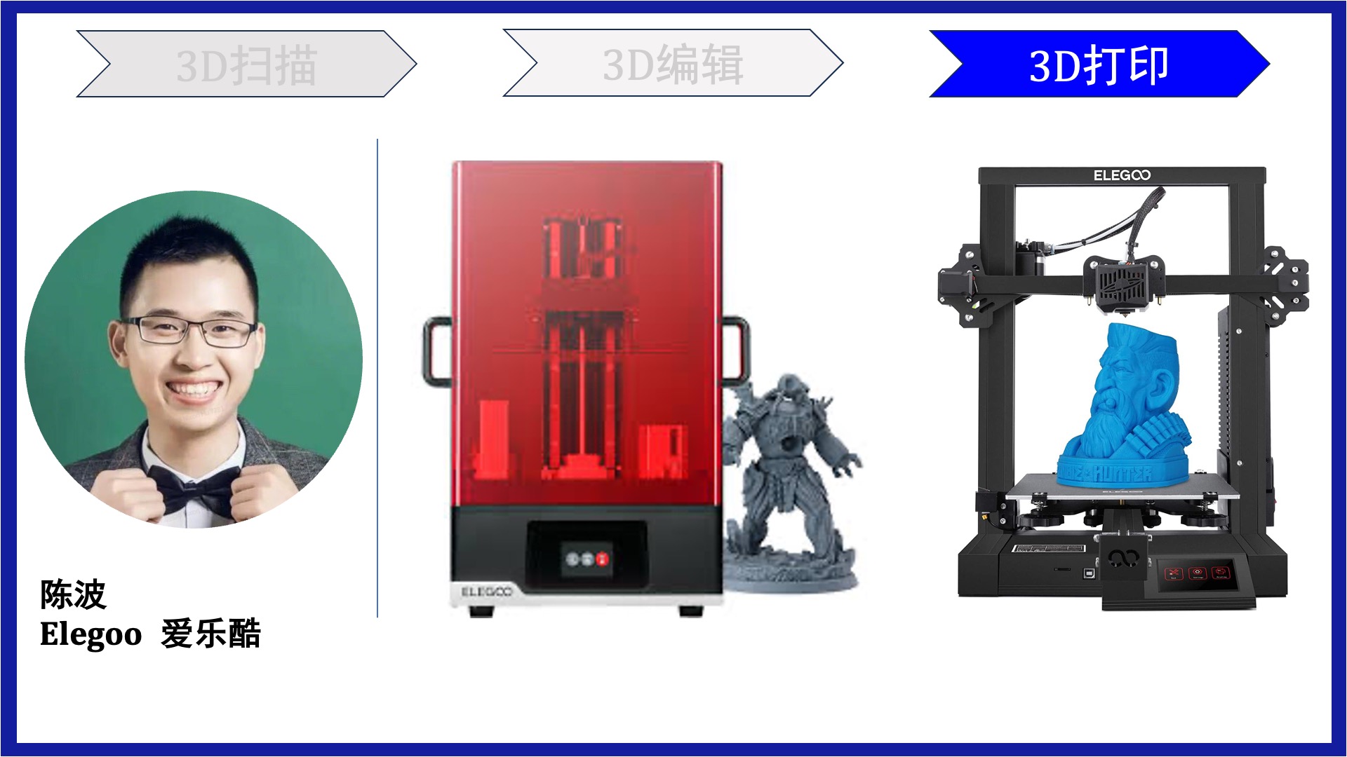 - 3D打印代表:陈波(3D打印机品牌Elegoo副总经理;品牌在消费级3D打印机市占率Top4,光固化打印领域市占第一,公司获得大疆创新投资)www.elegoo.com、www.nexprint.com