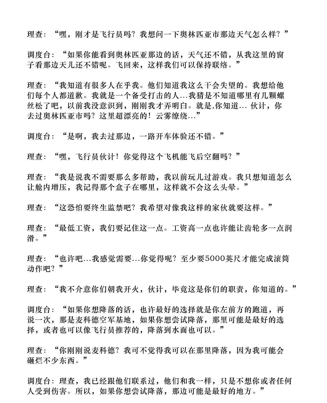 受字数限制,只能把他和飞行员、空管之间的部分对话摘录下来: