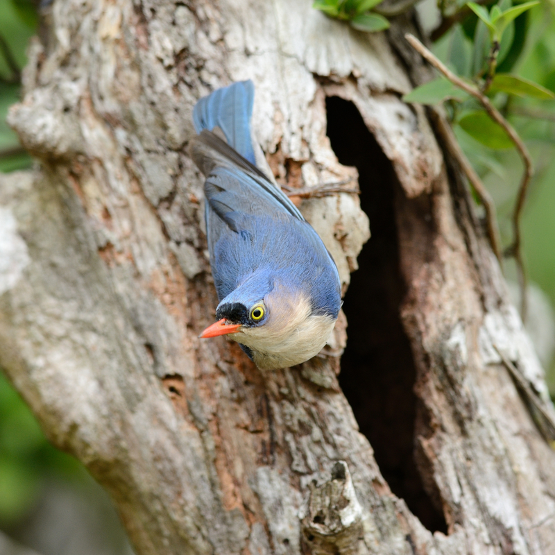 绒额䴓(shī) (英文名:Velvet-fronted Nuthatch,学名:Sitta frontalis),是雀形目䴓科䴓属的鸟类。广泛分布于南亚至东南亚地区,从尼泊尔、印度、斯里兰卡、孟加拉国向东延伸至中国南部和印尼大巽他群岛(巴厘岛除外)。其显著特征包括深蓝的背部、鲜红的喙、黑色的额斑以及独特的叫声。通常栖息于有良好树冠覆盖的森林中,活跃于树干和树枝间。