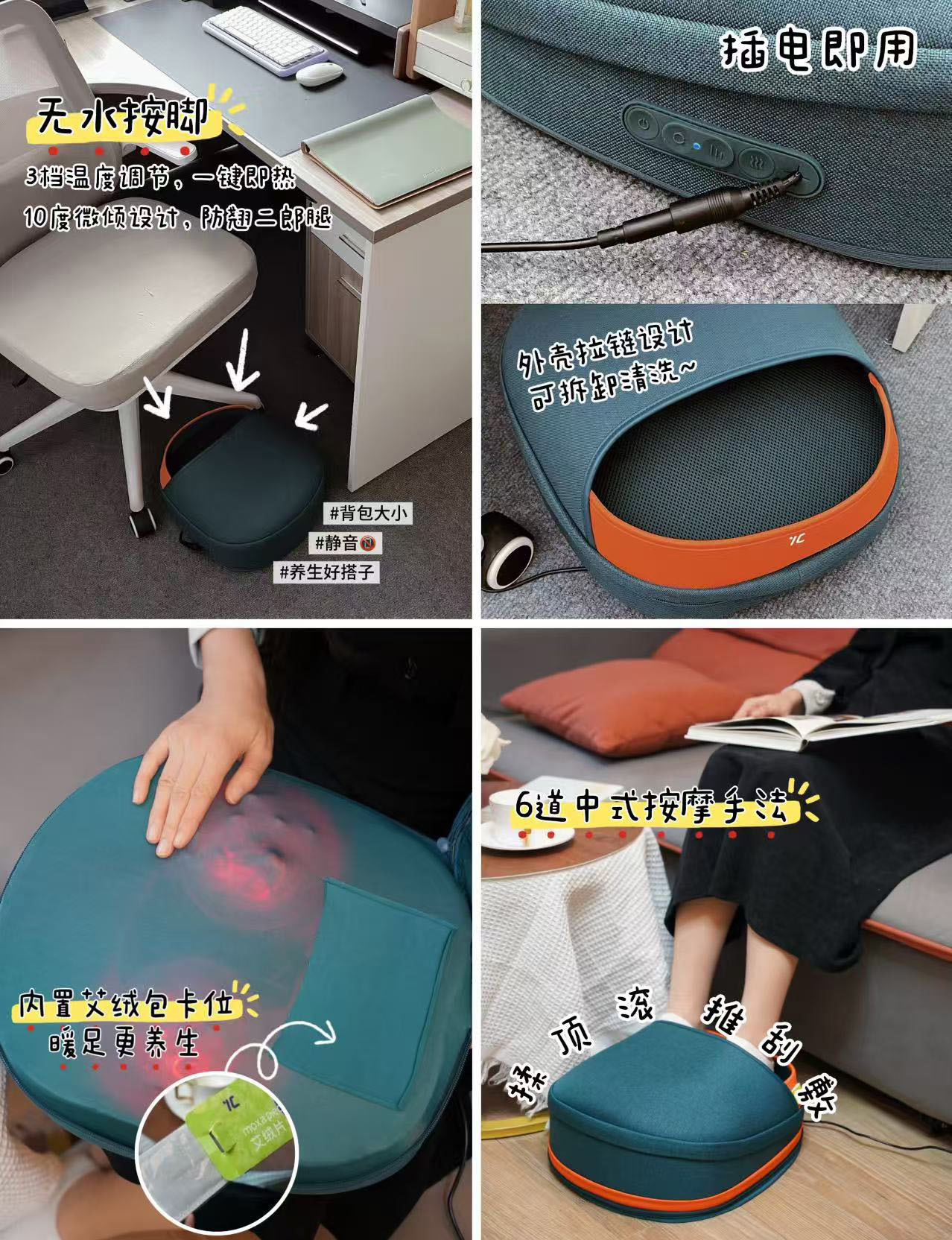 本节目推荐的「七西按摩腰靠」无线充电特别方便,平时用起来使用频率特高,每天靠着按15分钟左右特别放松,尤其是酸痛的斜方肌,就像有一双大手不停地揉捏,省了不少出去按摩的钱,平时还可以按腰按大腿小腿,再加上热敷功能,太舒服了。每天到家按那么几下,睡前想泡脚,不想倒水换水的时候,就直接用足部按摩仪,它里面是不需要水的,按了开关以后,就会有一个小机器在底下给你按摩,按完气血充足了,睡眠也会特别好。