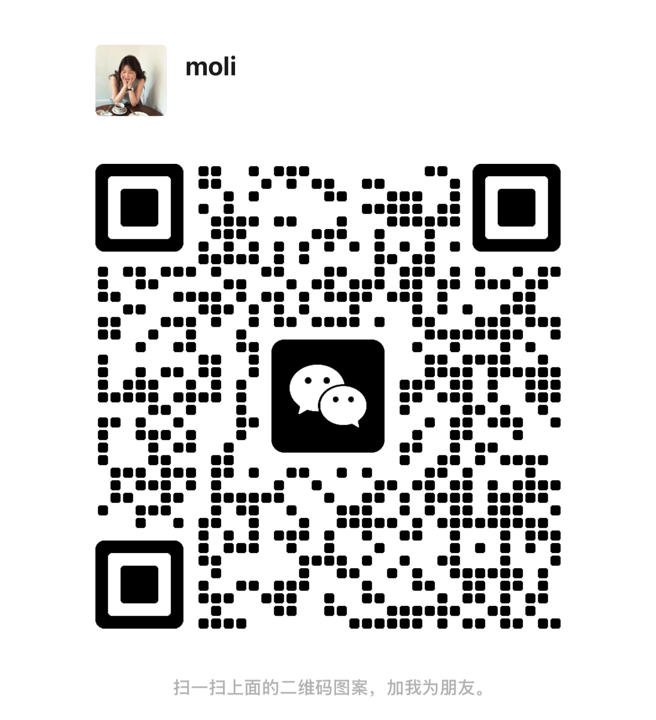 如果你对纹眉有兴趣,且目前在广州及周边地区,欢迎扫描下方二维码(或直接搜索wx号:Moli08090706)添加Moli,一位有审美有技术,且对自己有要求的纹眉师,来了解更多纹绣相关。我们也争取到了惊喜福利,添加时备注基础颜究即可享受哦~