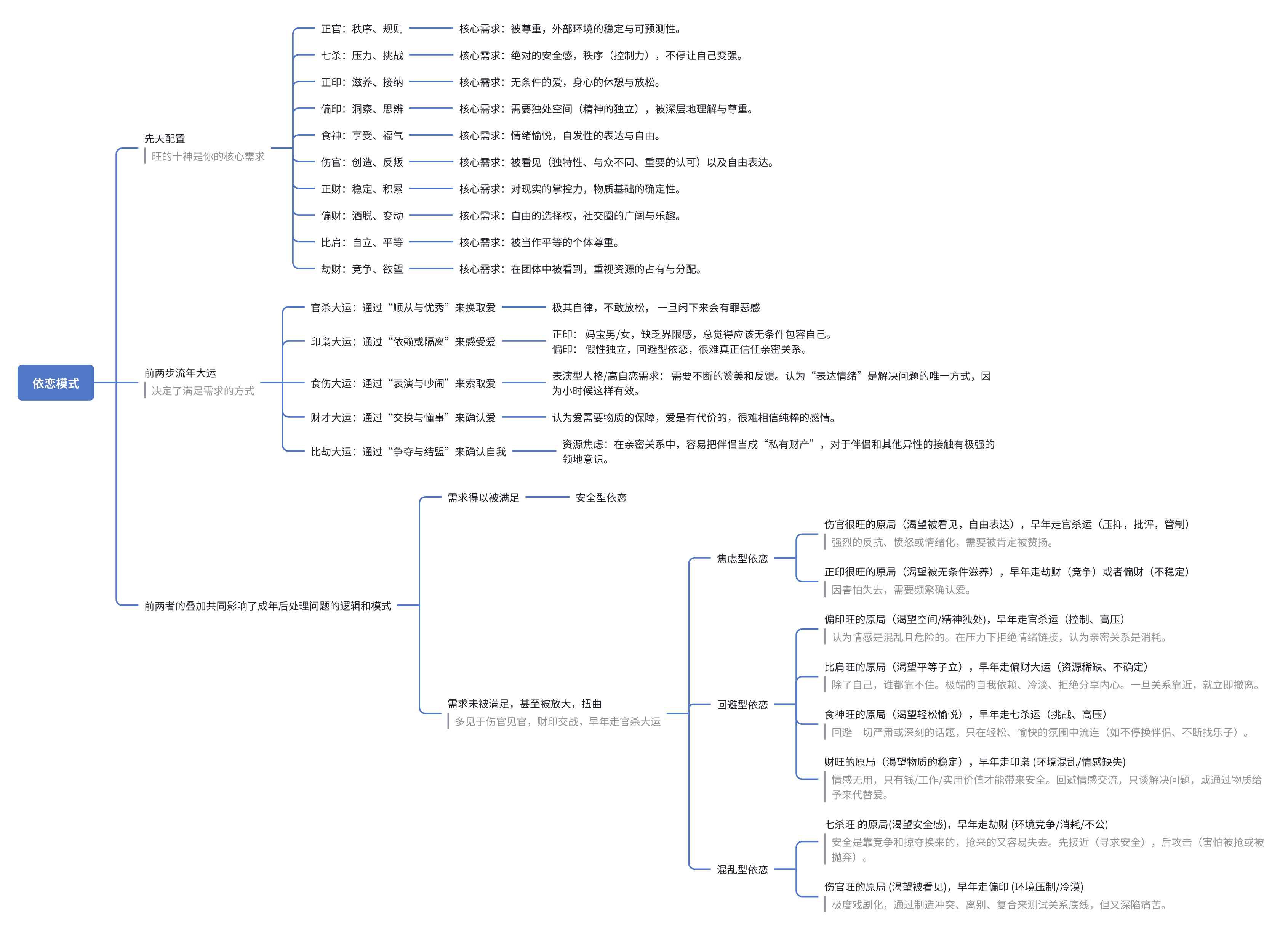 本期播客,我邀请了老朋友心理咨询师三熊,一起聊聊如何透过八字看一个人的性格特色与关系模式。八字原局反映了我们的“核心需求”,而人生起步的前两步大运,则构成了“需求是否被满足”的外部环境。两者共同影响了我们成年后所沿用处理亲密关系的逻辑以及行为,以此我们讨论了4种依恋关系:安全型,回避型,焦虑型,恐惧型。