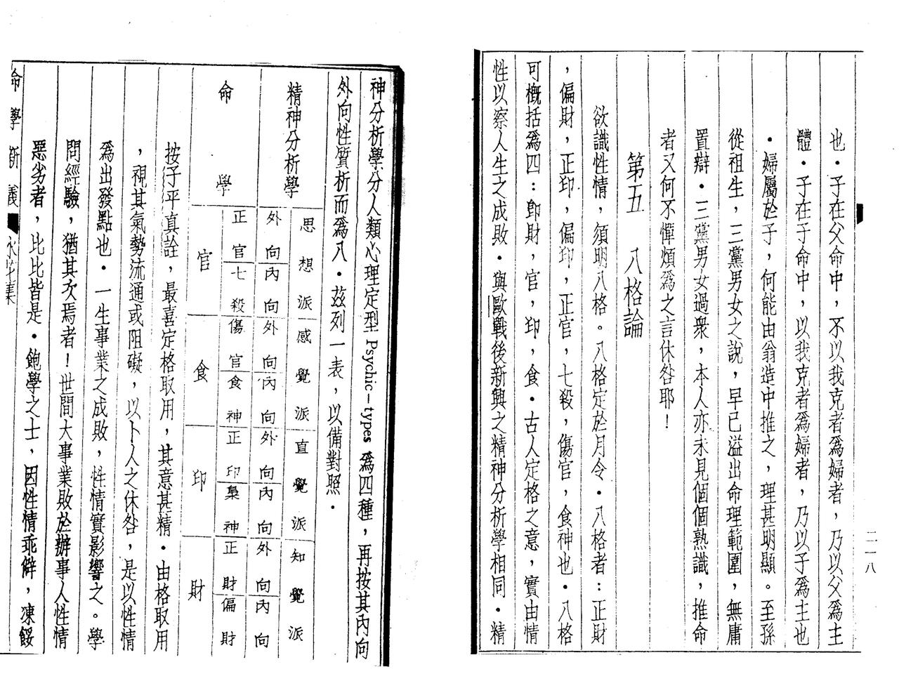 书里面有一章节名为《水花集》,把荣格八维的心理学部分与八字的八格(以月令取格局)进行对比分析,推断人的性格特征。