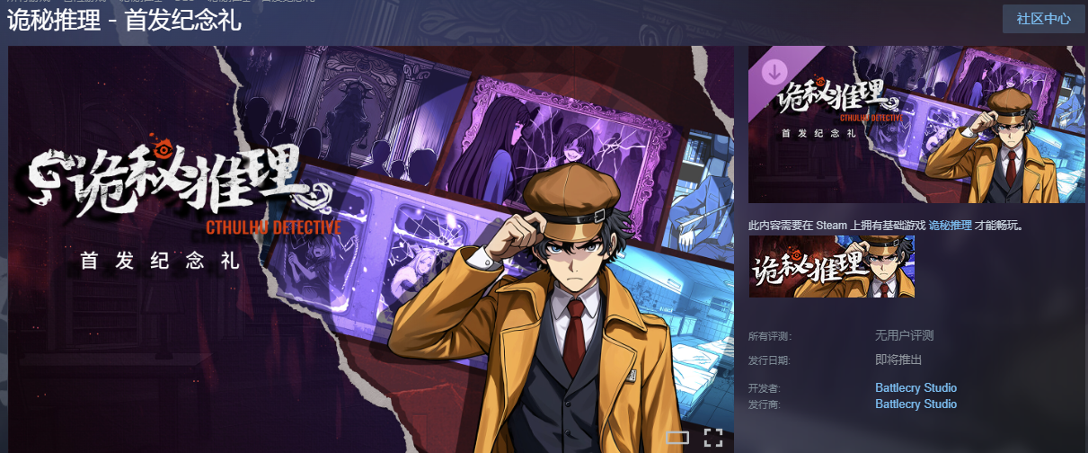 1:01:42 游戏发售时间:11.27日,定价39元,希望让更多的玩家可以体验到推理游戏的魅力