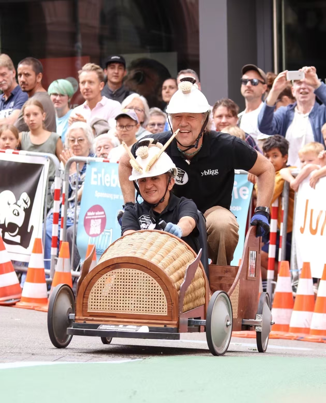 用手工藤编赛车参加老爷车比赛