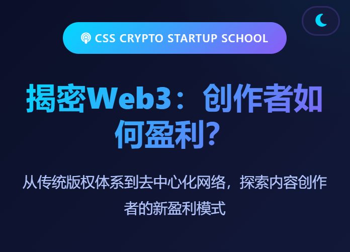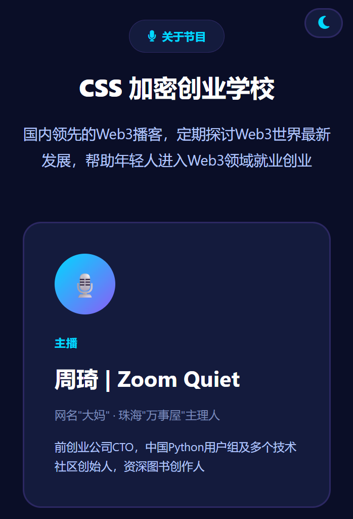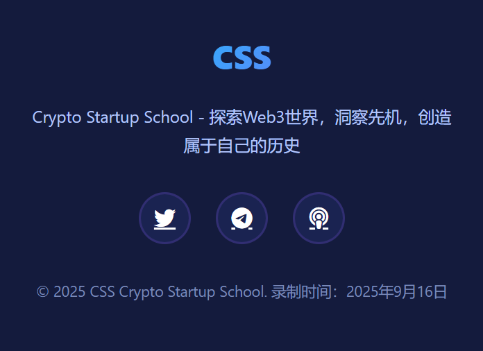 欢迎来到CSS,全称 Crypto Startup School(加密创业学校),是校园VC旗下的创客频道,也是国内领先的 Web3 播客。