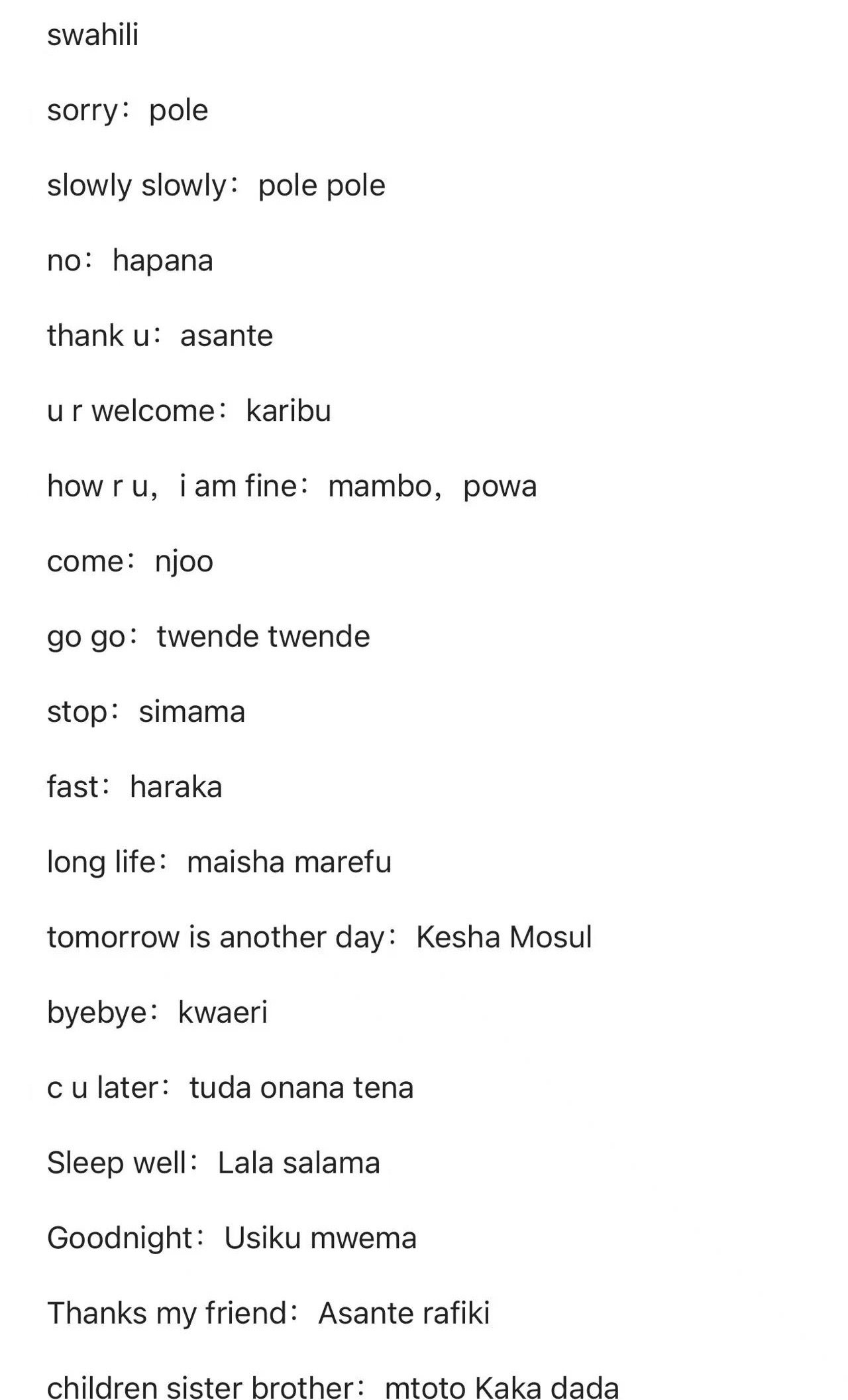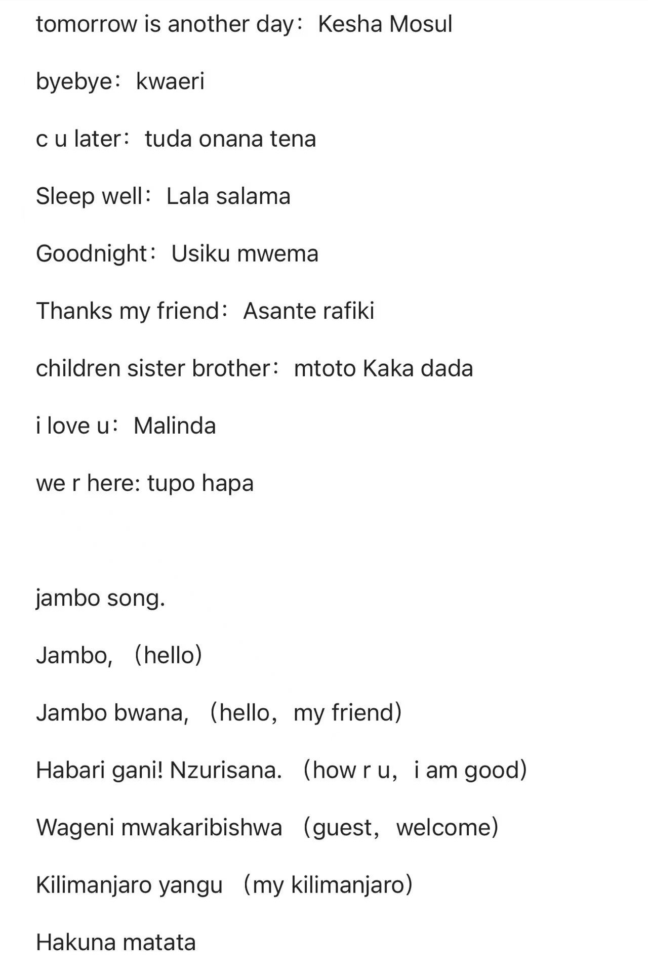 来自Iris好友布鲁狸的斯瓦西里语单词表