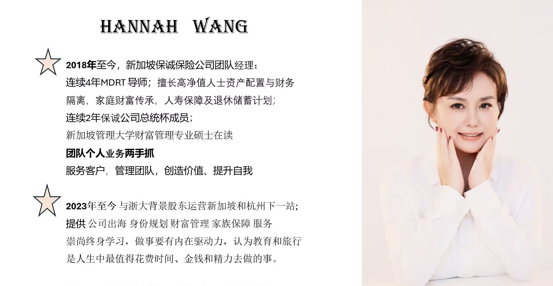 在这期播客中,Hannah真诚地分享了她丰富的人生经历与思考。从护士到物业管理创业者,再到新加坡顶尖保险团队经理,她的每一步跨越都充满勇气。她特别强调终身学习、经济独立和坚持锻炼是保持年轻心态与事业长青的三大支柱。