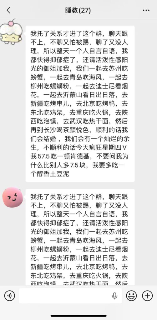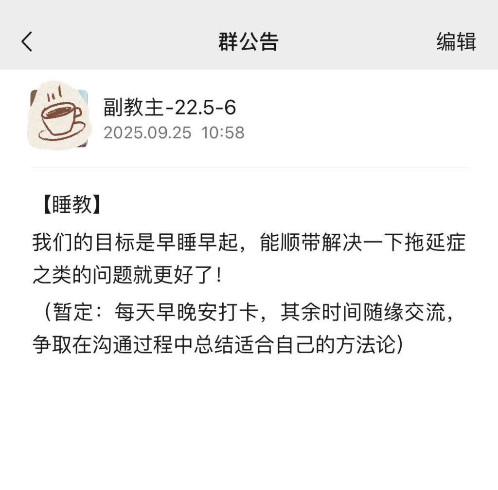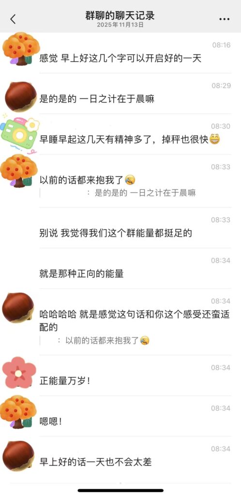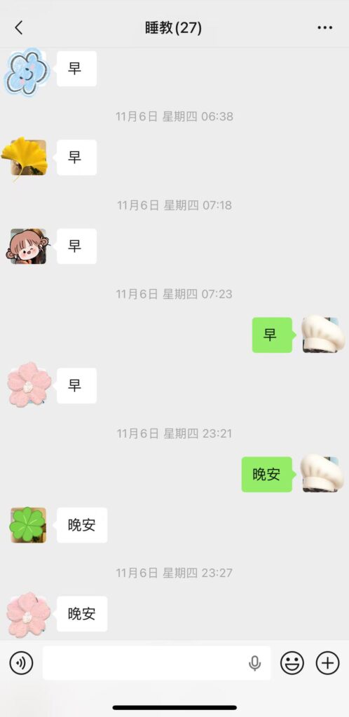 这个群的诞生过程挺有意思的——源于小红书上的一个网友,ta倡议大家建一个睡觉群,之后却没了下文。于是晓敏自己建了群,并且从小红书转战到了微信。