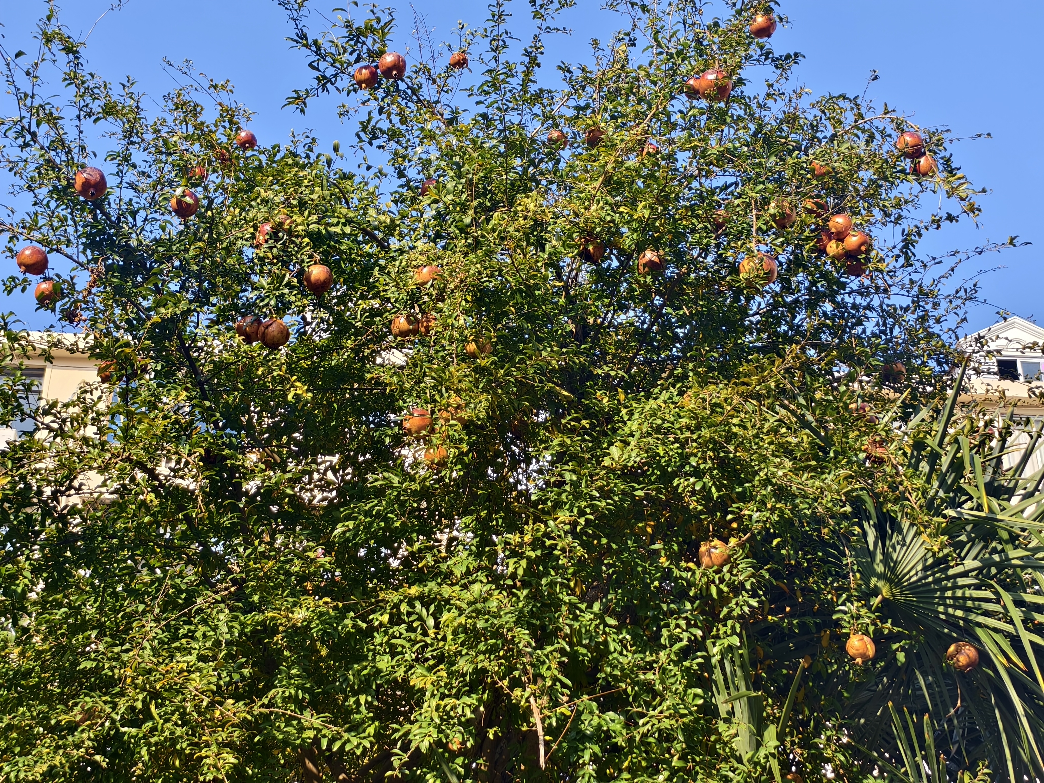 梦梦小区里自由生长的石榴树