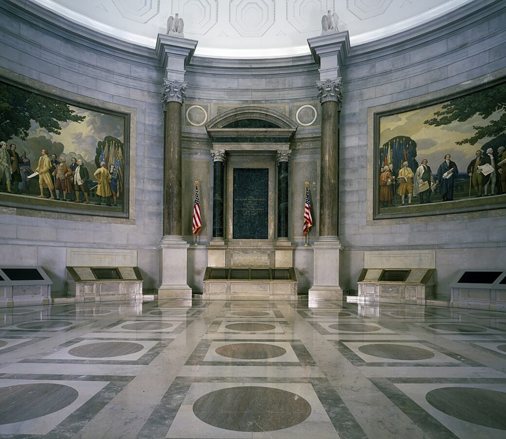 《独立宣言》原件永久陈列于华盛顿特区国家档案馆博物馆的自由宪章圆形大厅内。