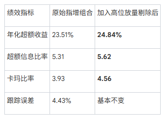 利用高位放量信号强大的负向预测能力,可以直接对指增组合进行优化。