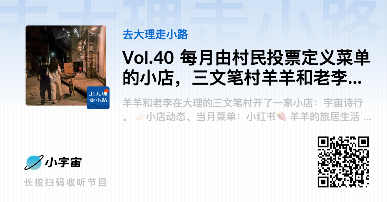 Vol.90 大理一年,在拥抱变化中探索生活的稳定感 —— 三文笔“老村民”羊羊&老李返场啦!去大理走小路