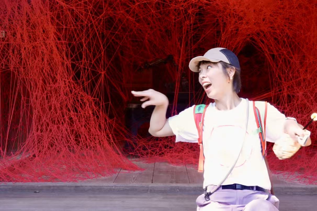 在盐田千春的作品前发疯的妮子