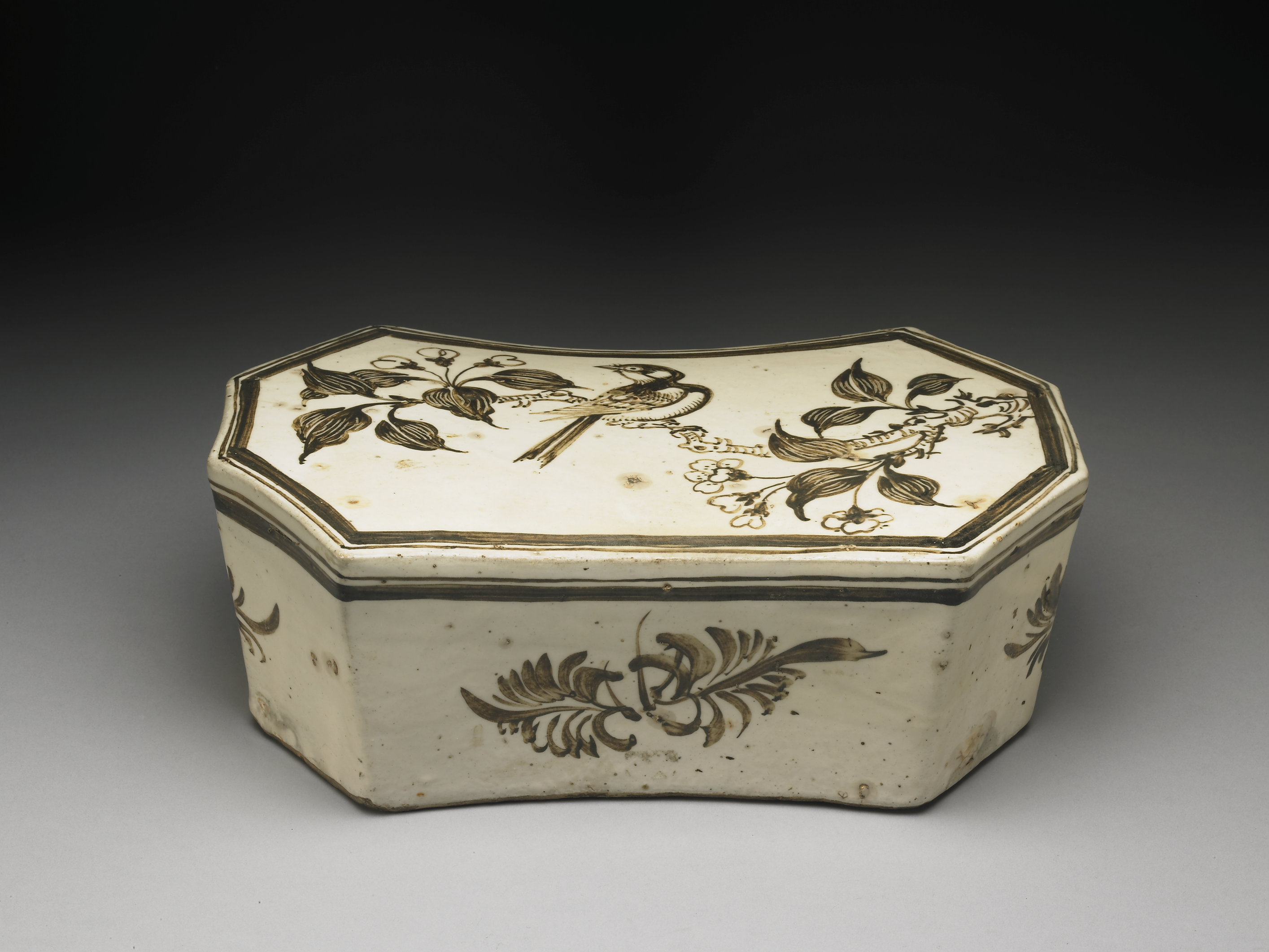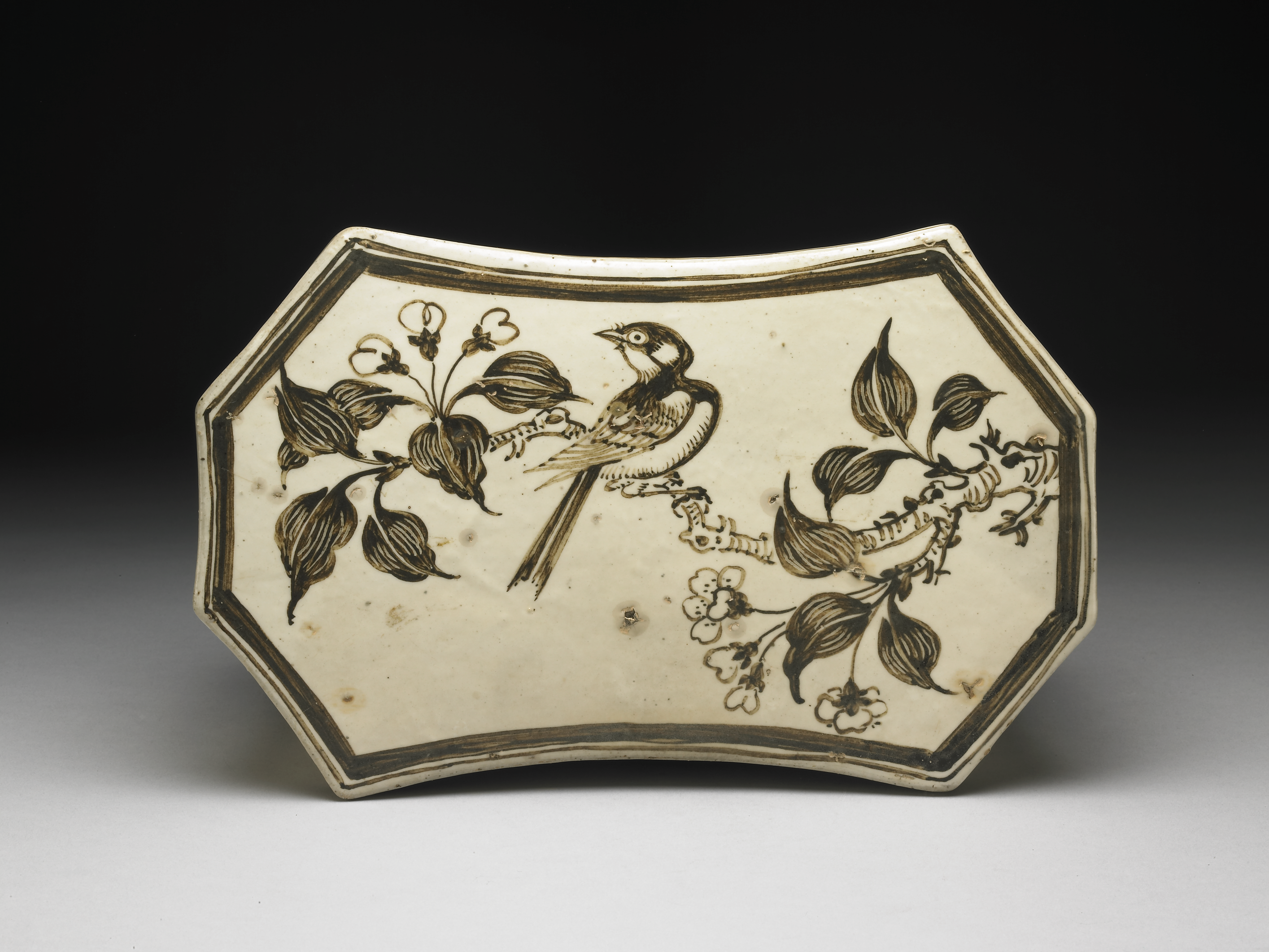 - 类型:Cizhou ware,石质胎,白化妆土上褐黑彩绘,透明釉